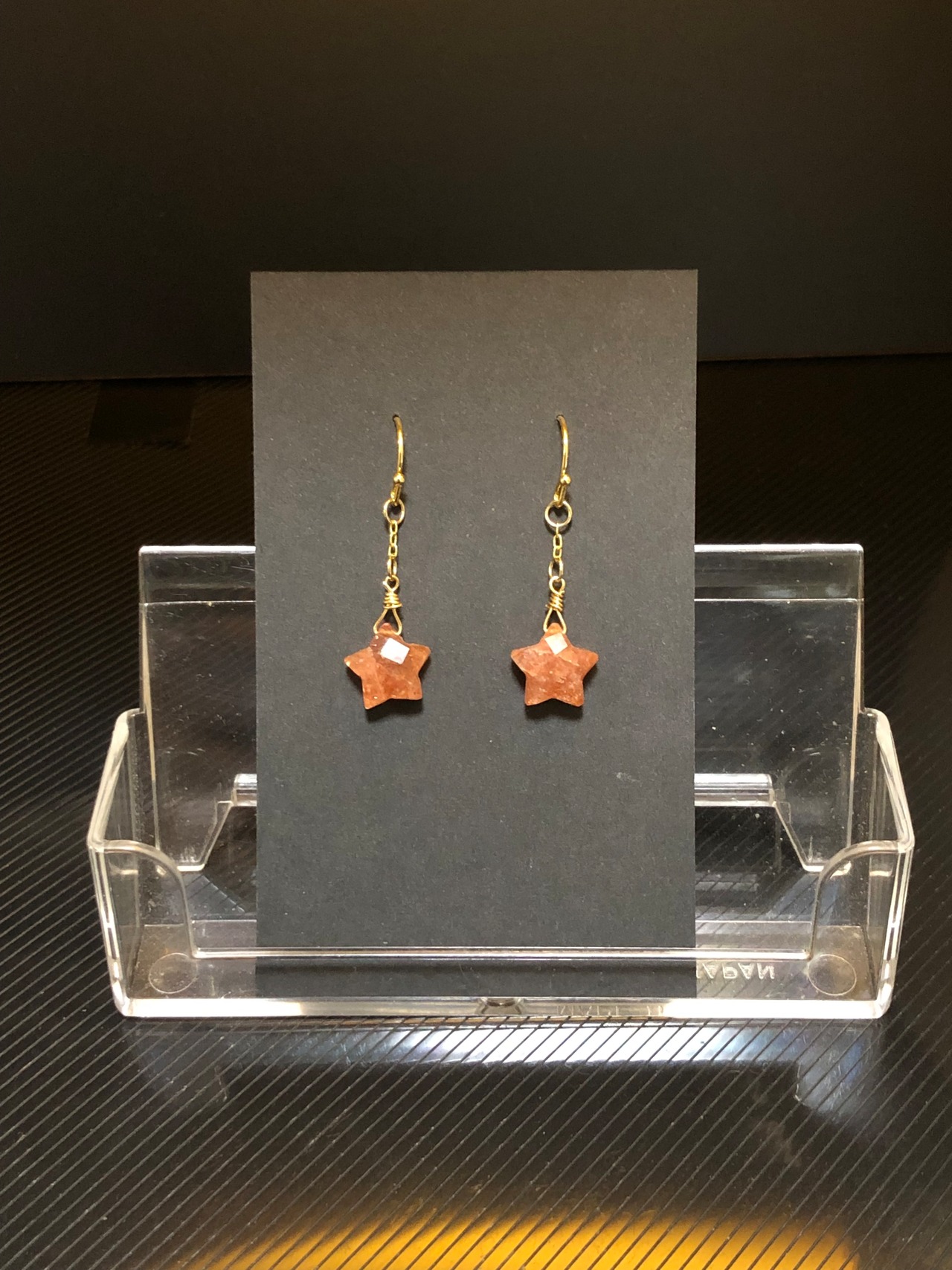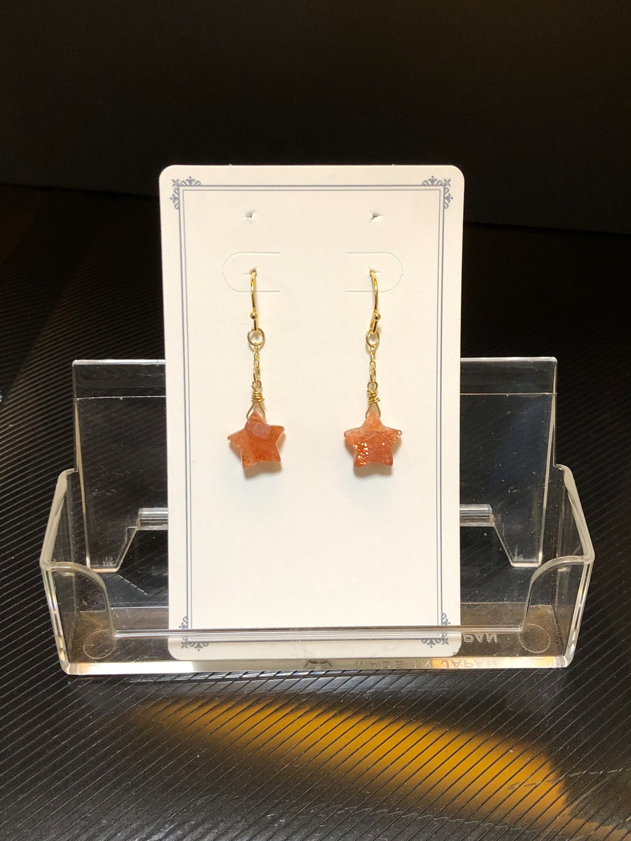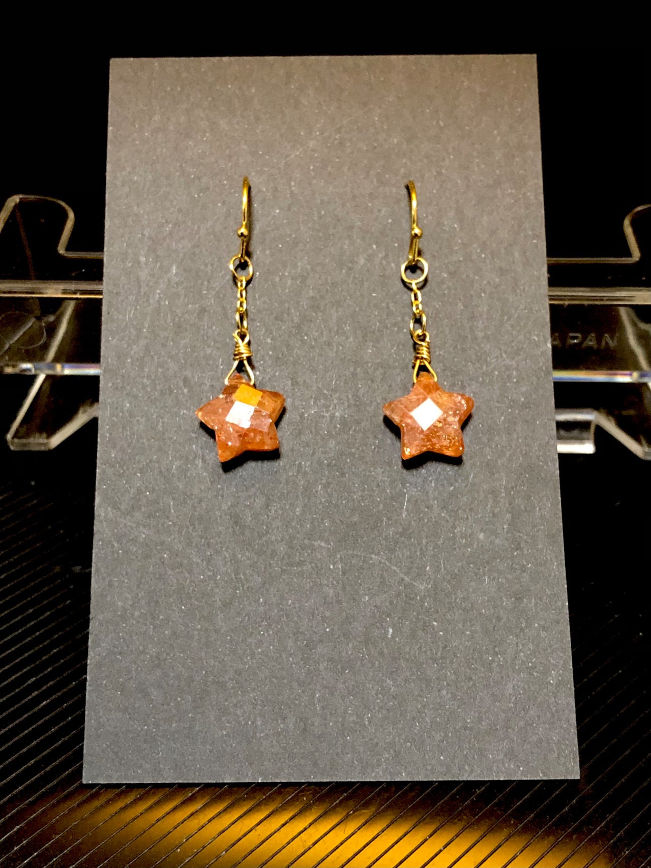天然石ピアス パワーストーン サンストーン スター 星型 約10㎜ タンザニア産 ハンドメイド ゴールドカラー チェーン式 ライトセミロング フックピアス
