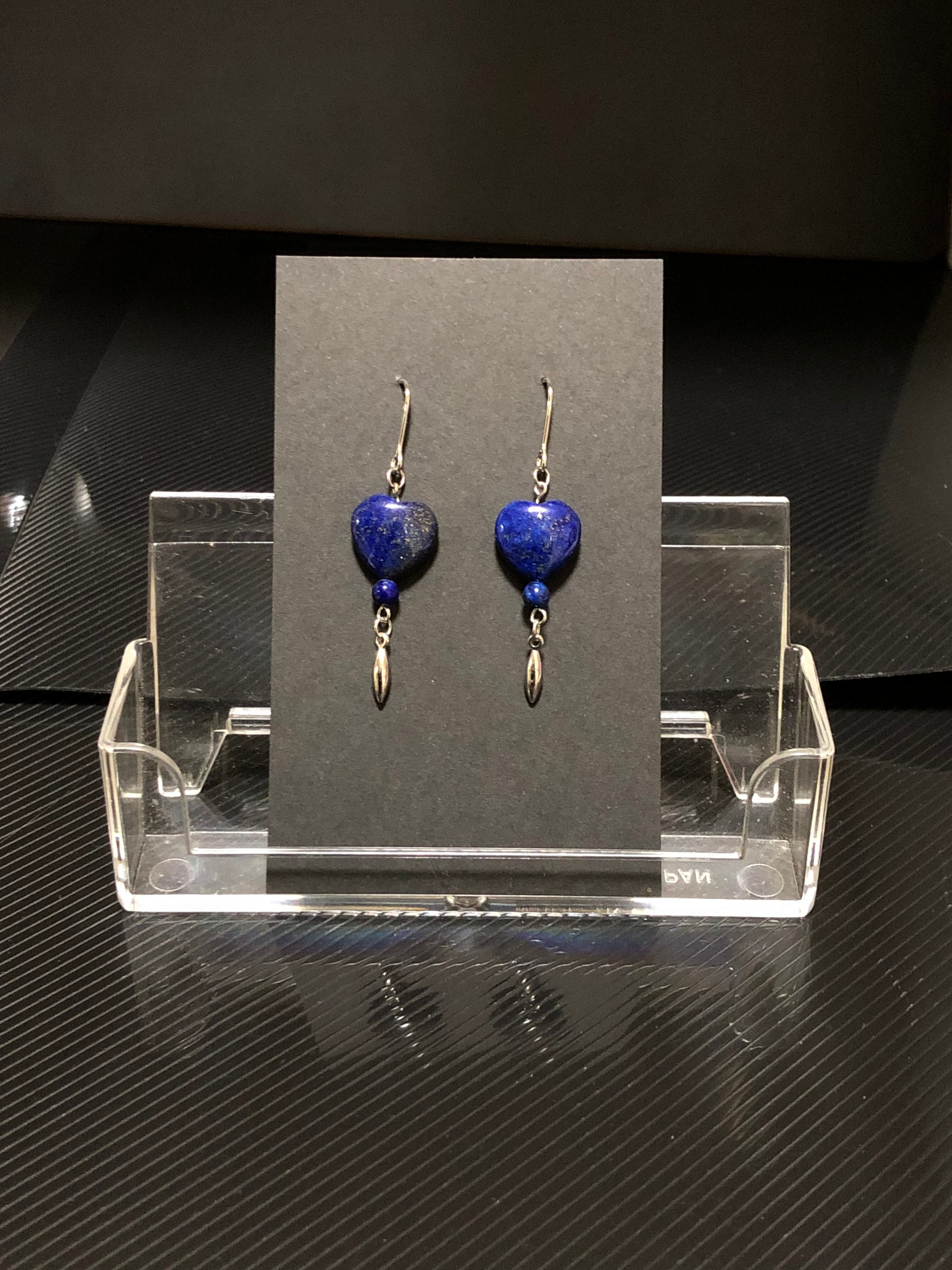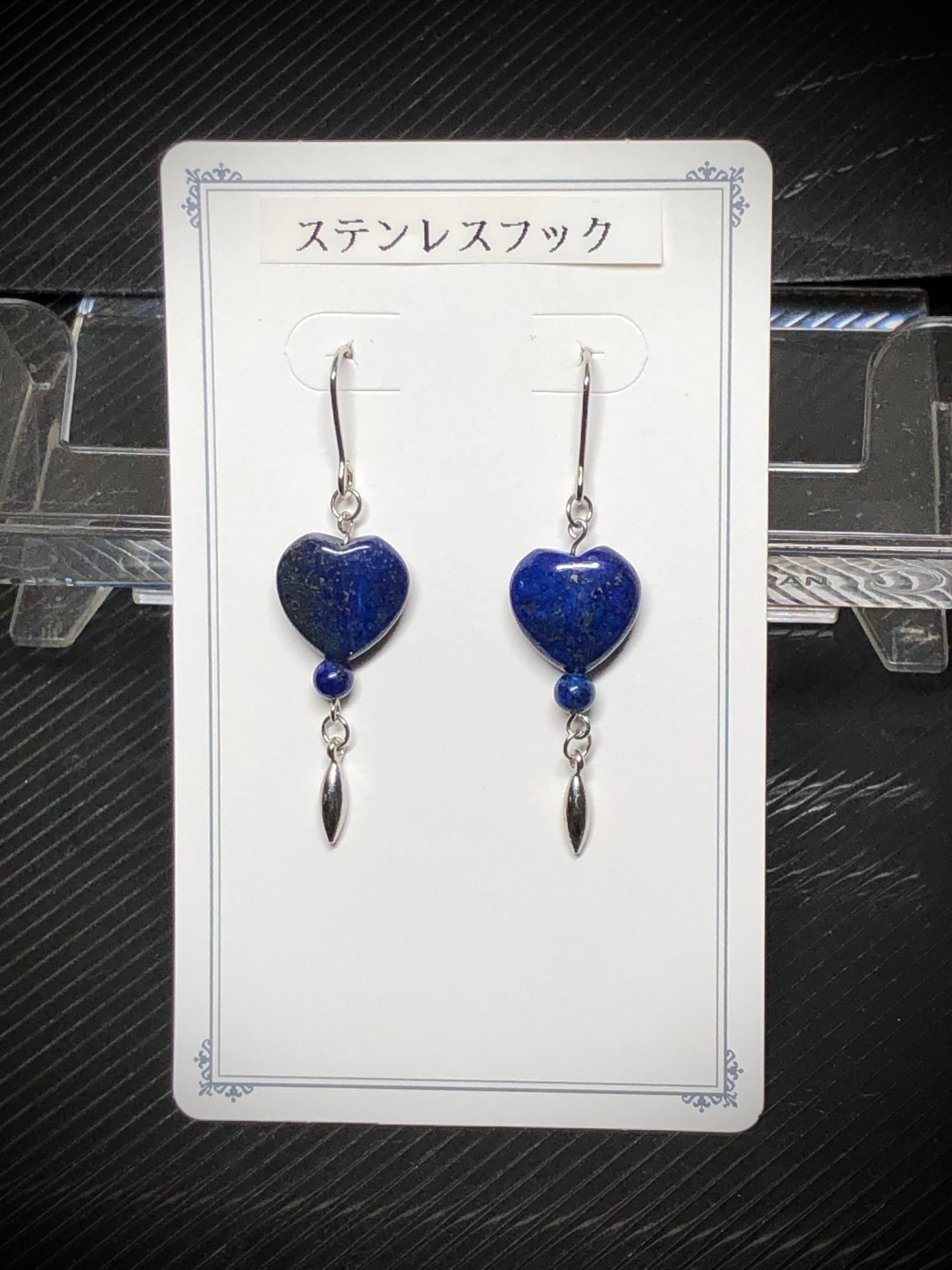 天然石ピアス パワーストーン ラピスラズリ ハート型 約12mm ラウンド 約4mm アフガニスタン産 メタルパーツ ツララ 8×2mm ハンドメイド シルバーカラー チェーン式 セミロング ステンレス フックピアス