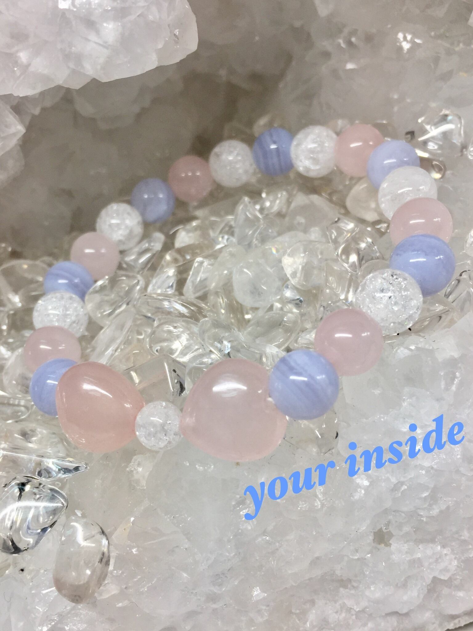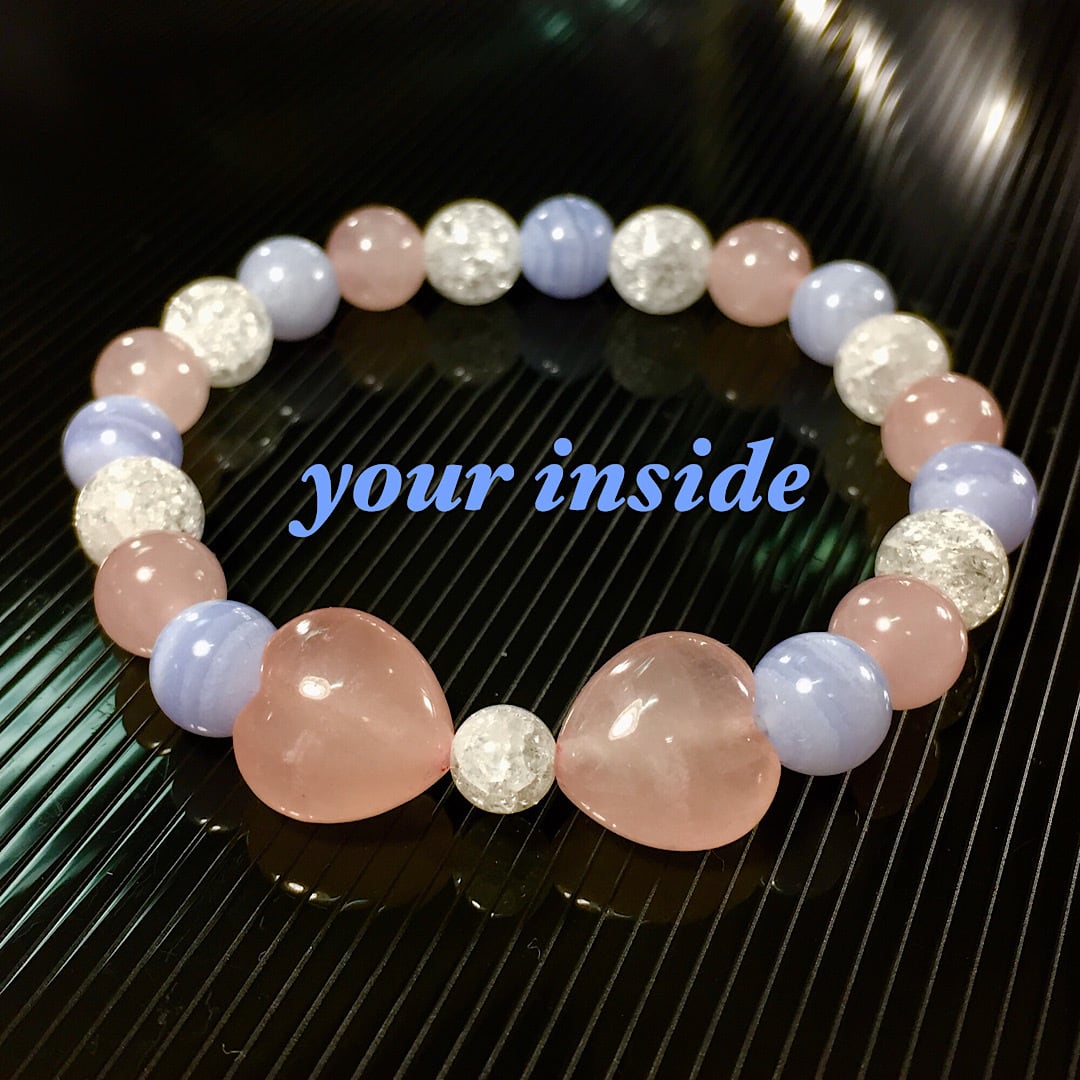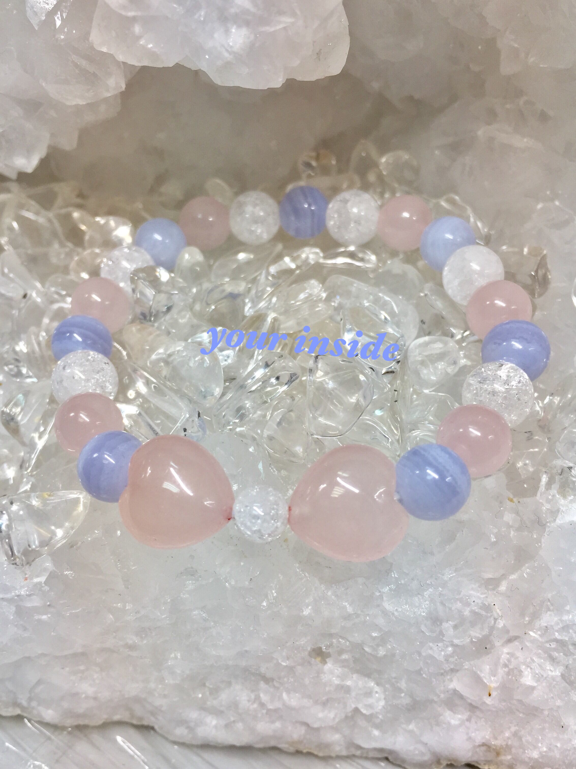 ローズクォーツ ハート リボン ブルーレースアゲート 天然石ブレスレット