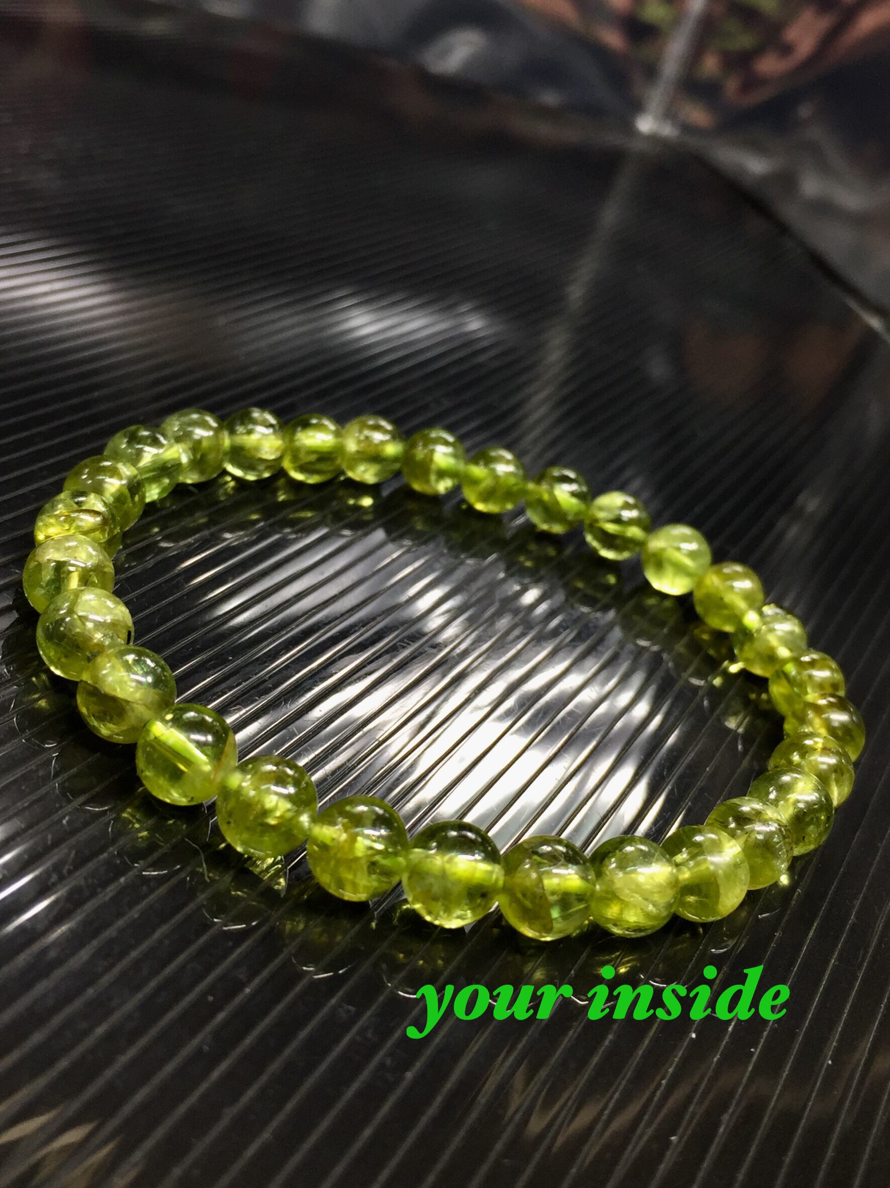 天然石ブレスレット ペリドットは癒しの石と言われ困難な状況でも、明るい希望の光で照らし、明るく前向きに生きていく希望を与え、夢を実現にするのを手助けしてくれると言われ、ペリドットを身につけると内面の魅力を引き出してくれ、異性を惹き付ける効果があると言われる。