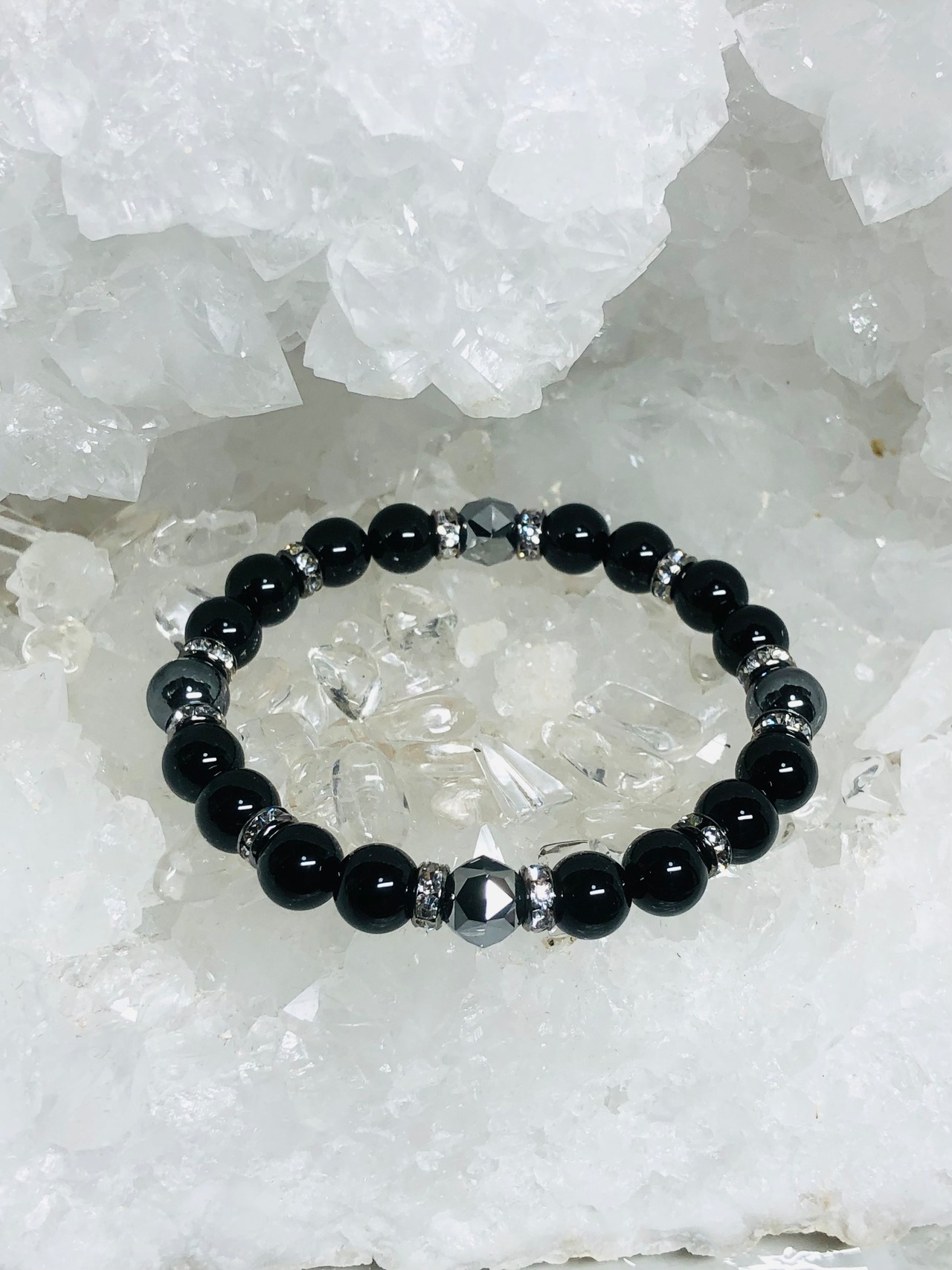 ブレスレットはオペロンゴムで作られ伸縮いたします。