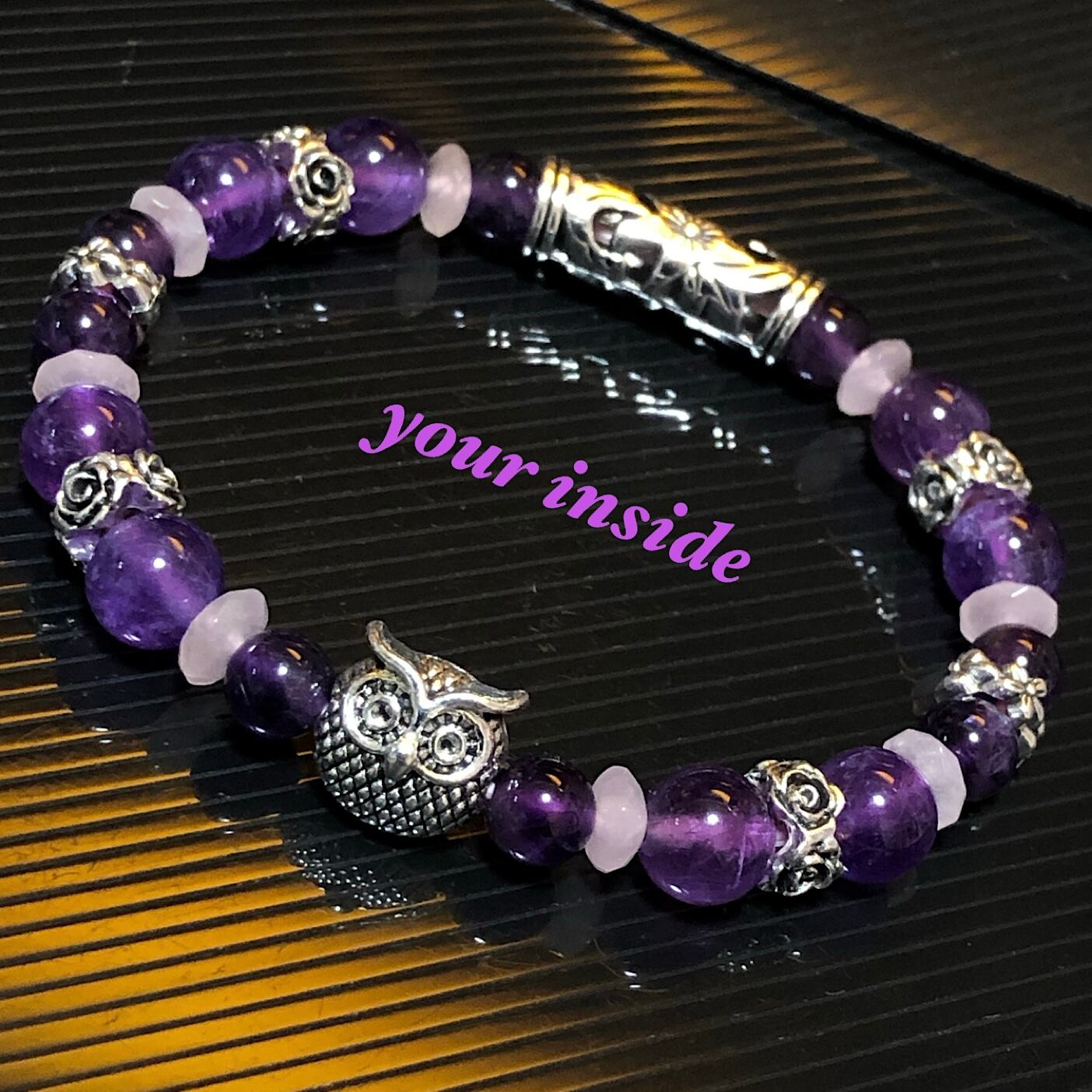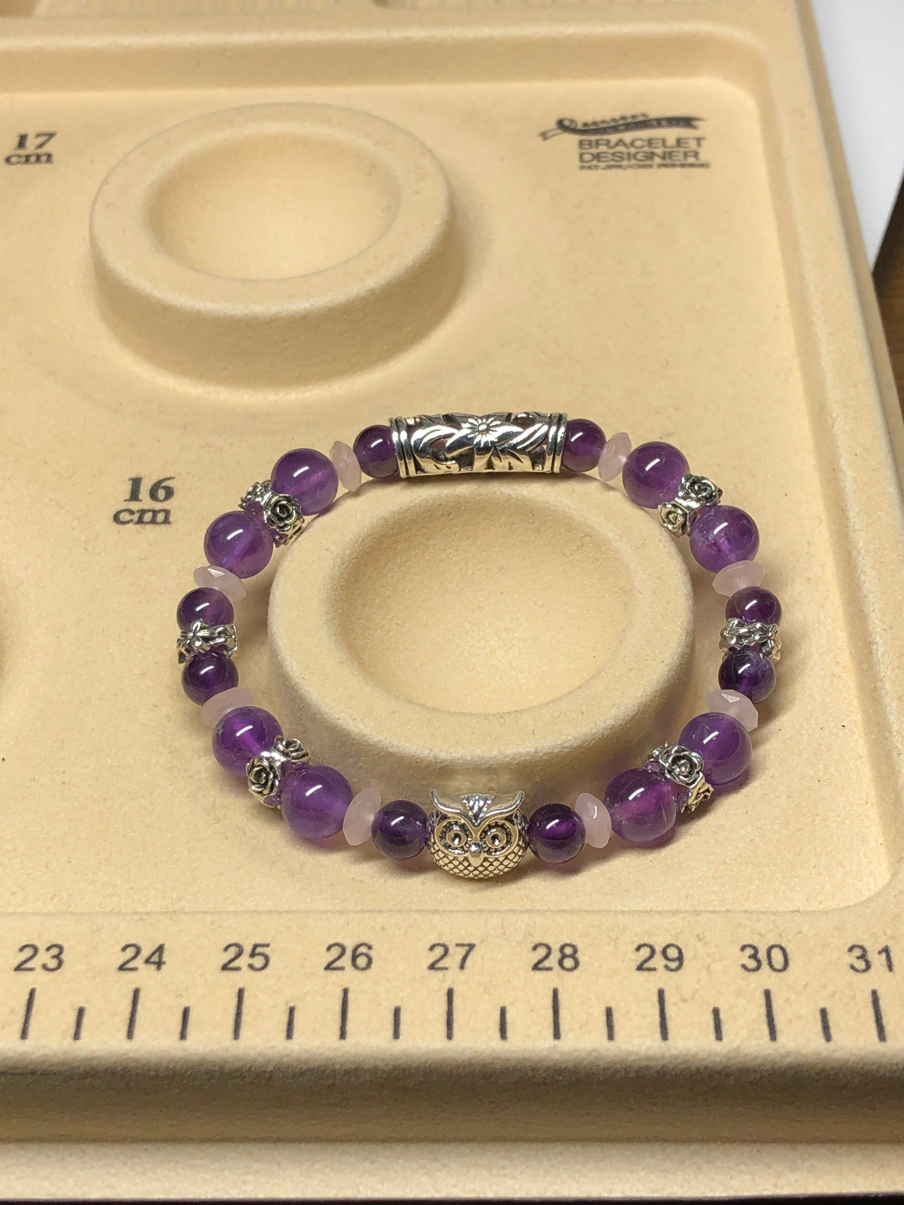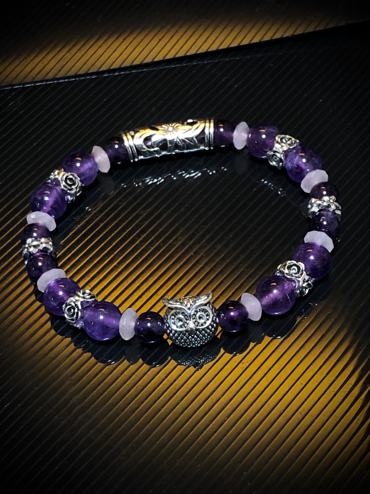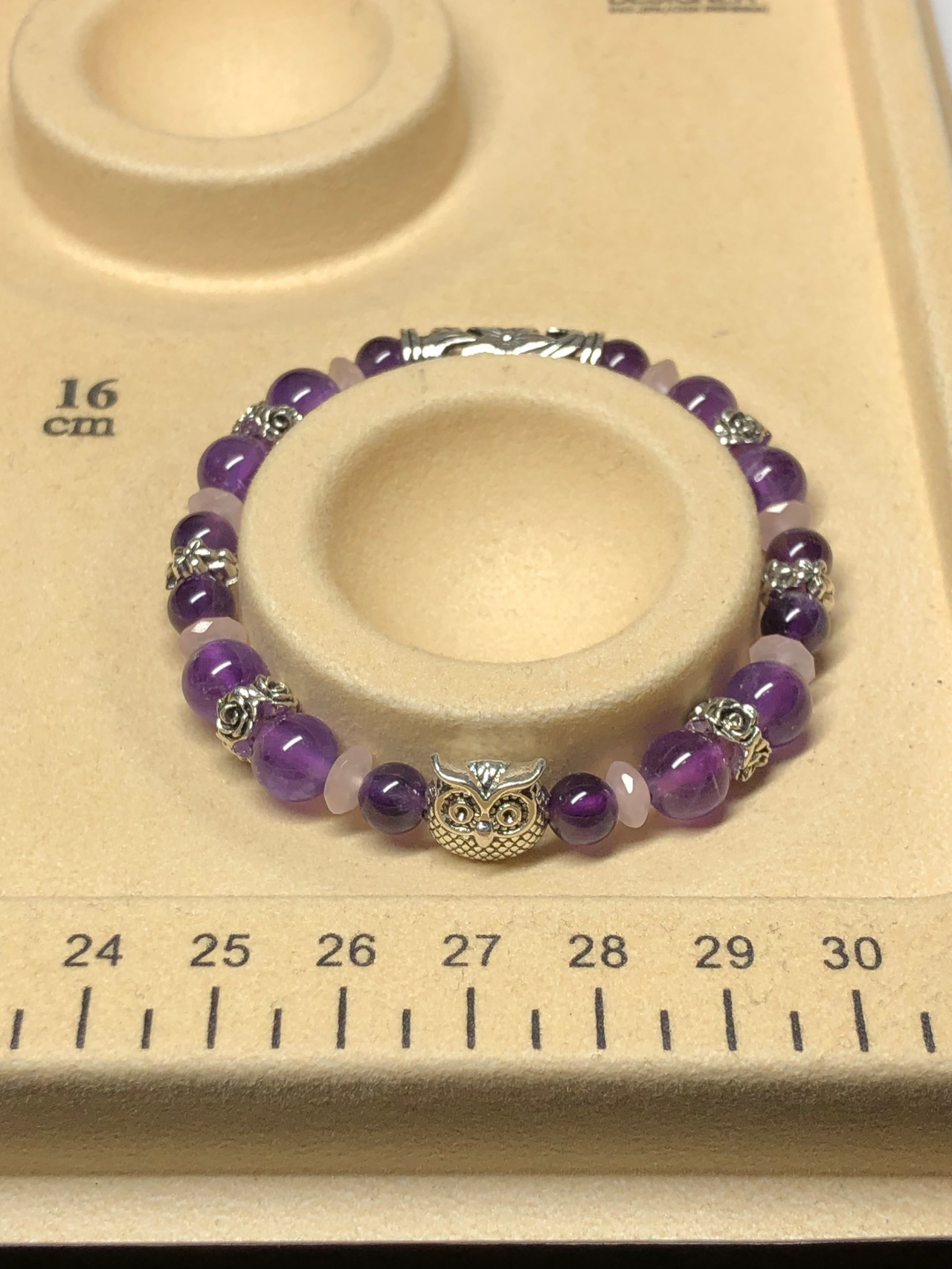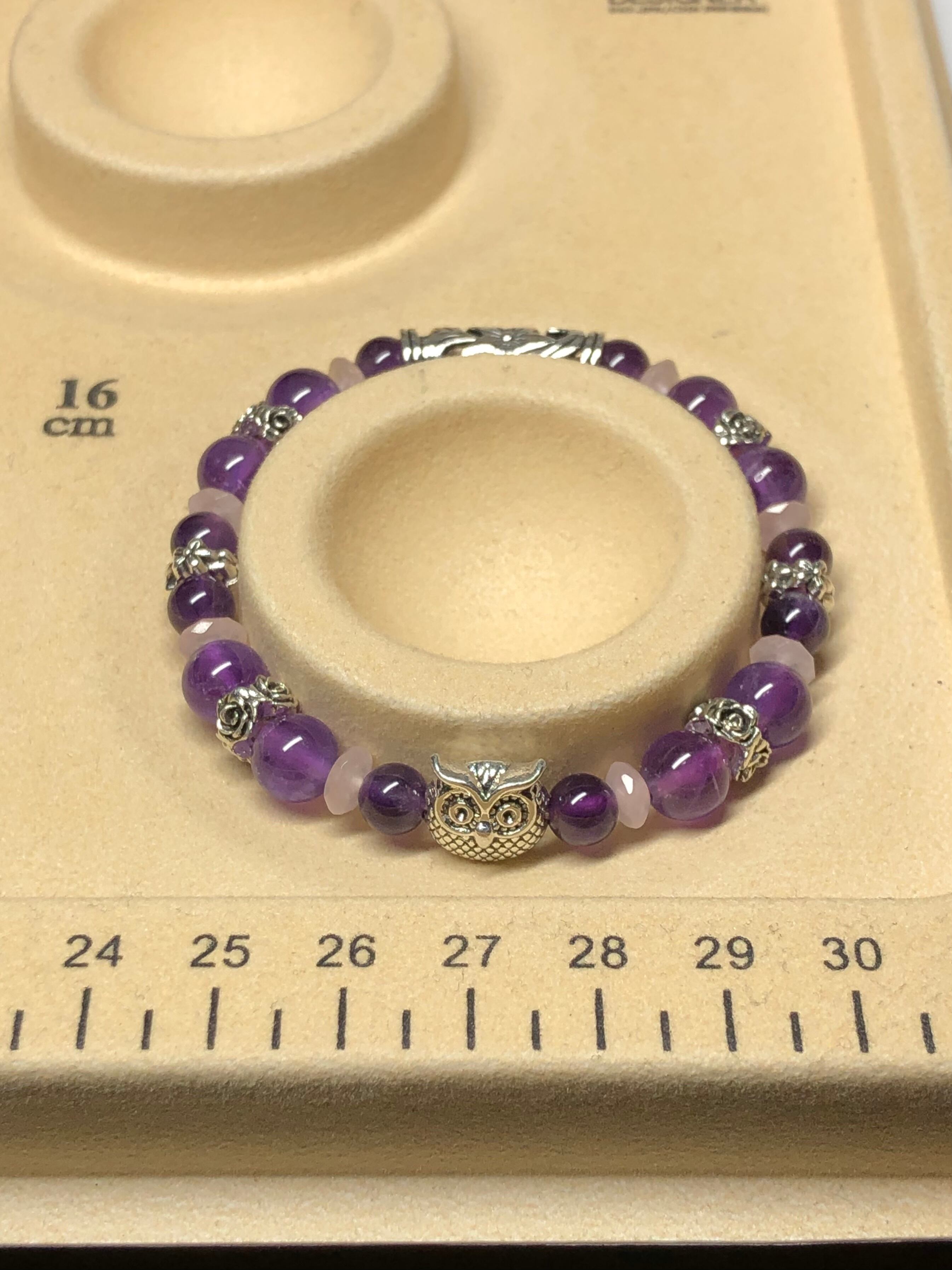 フクロウ アメジスト ローズクォーツ 天然石ブレスレット