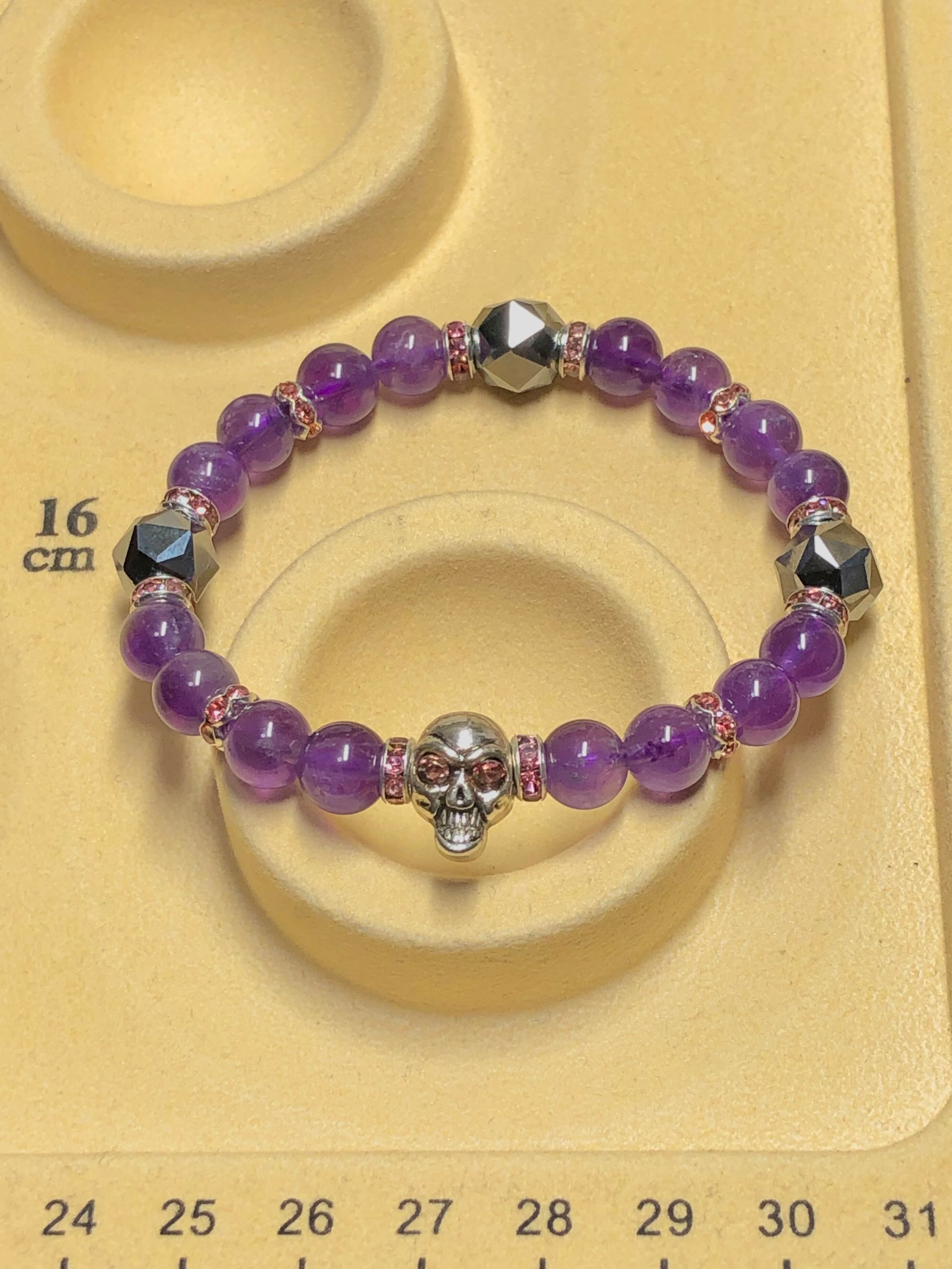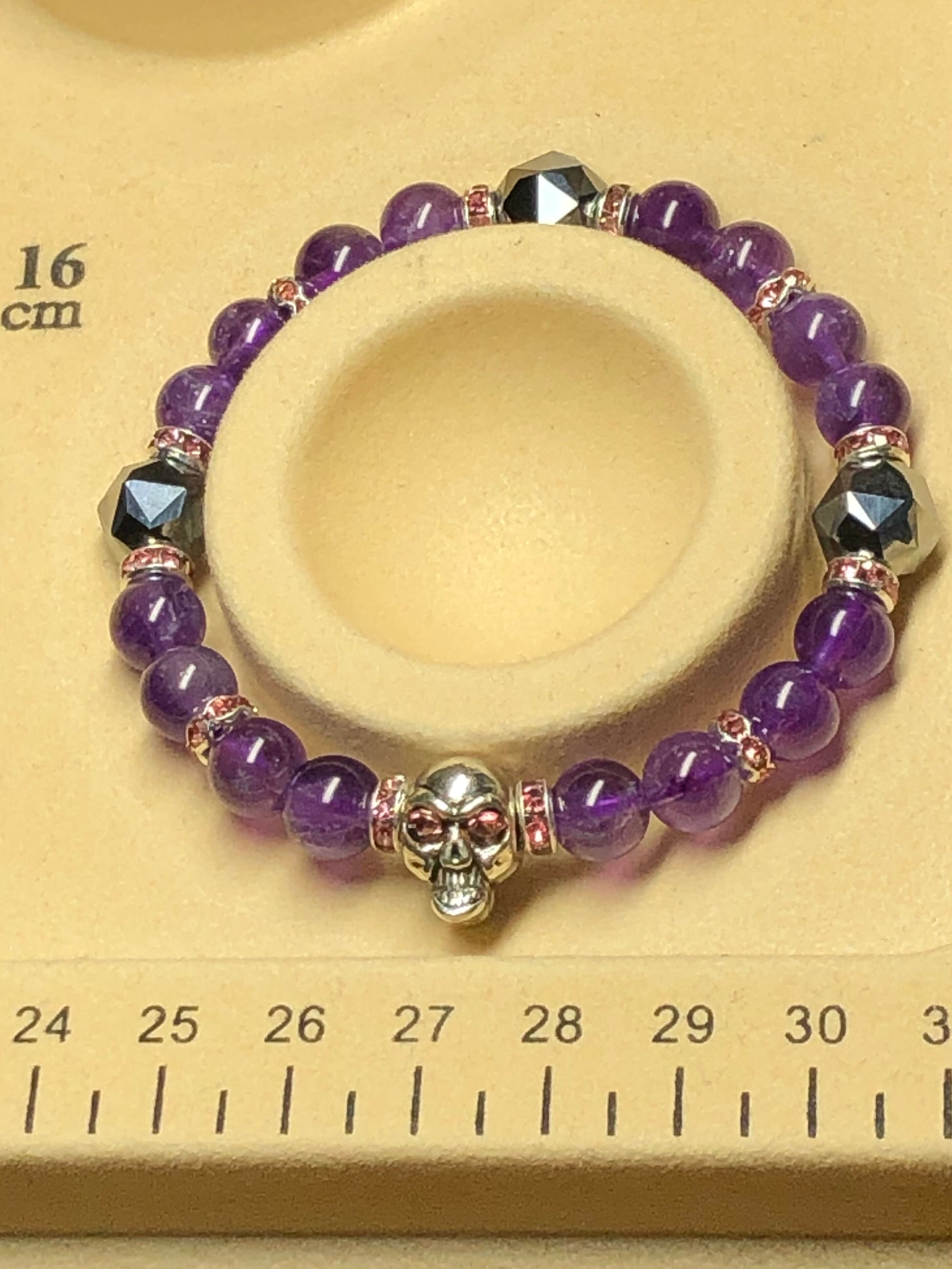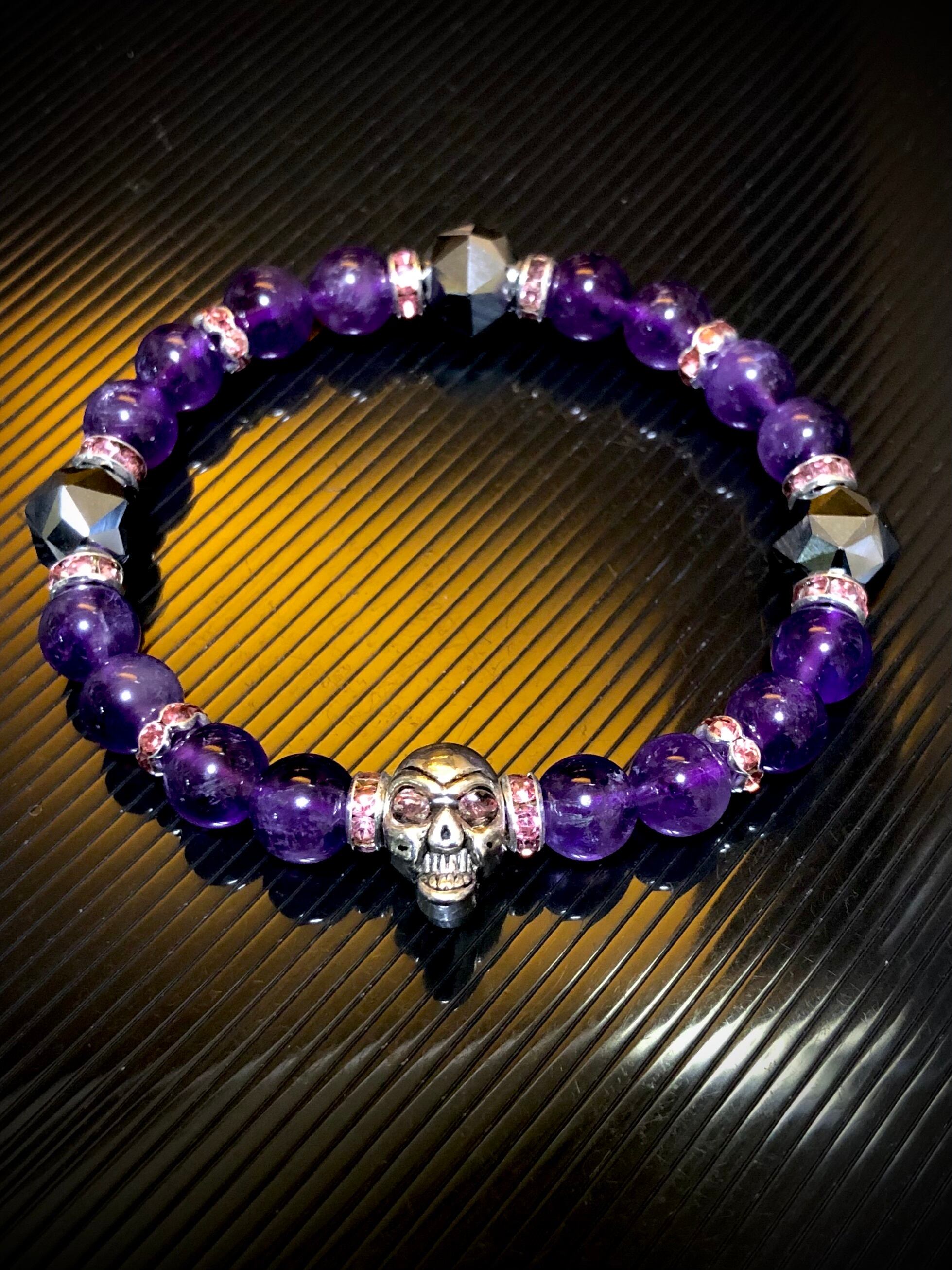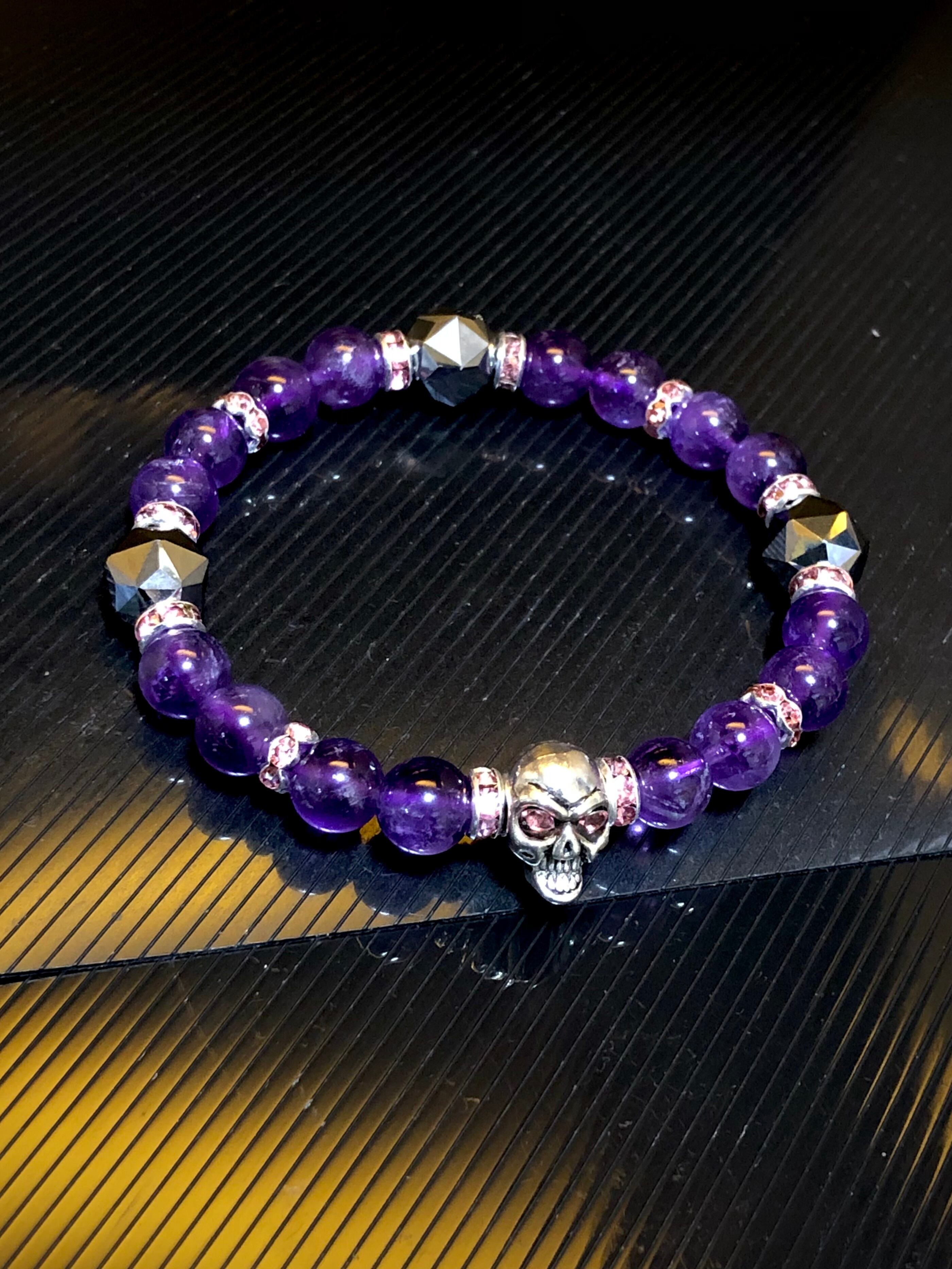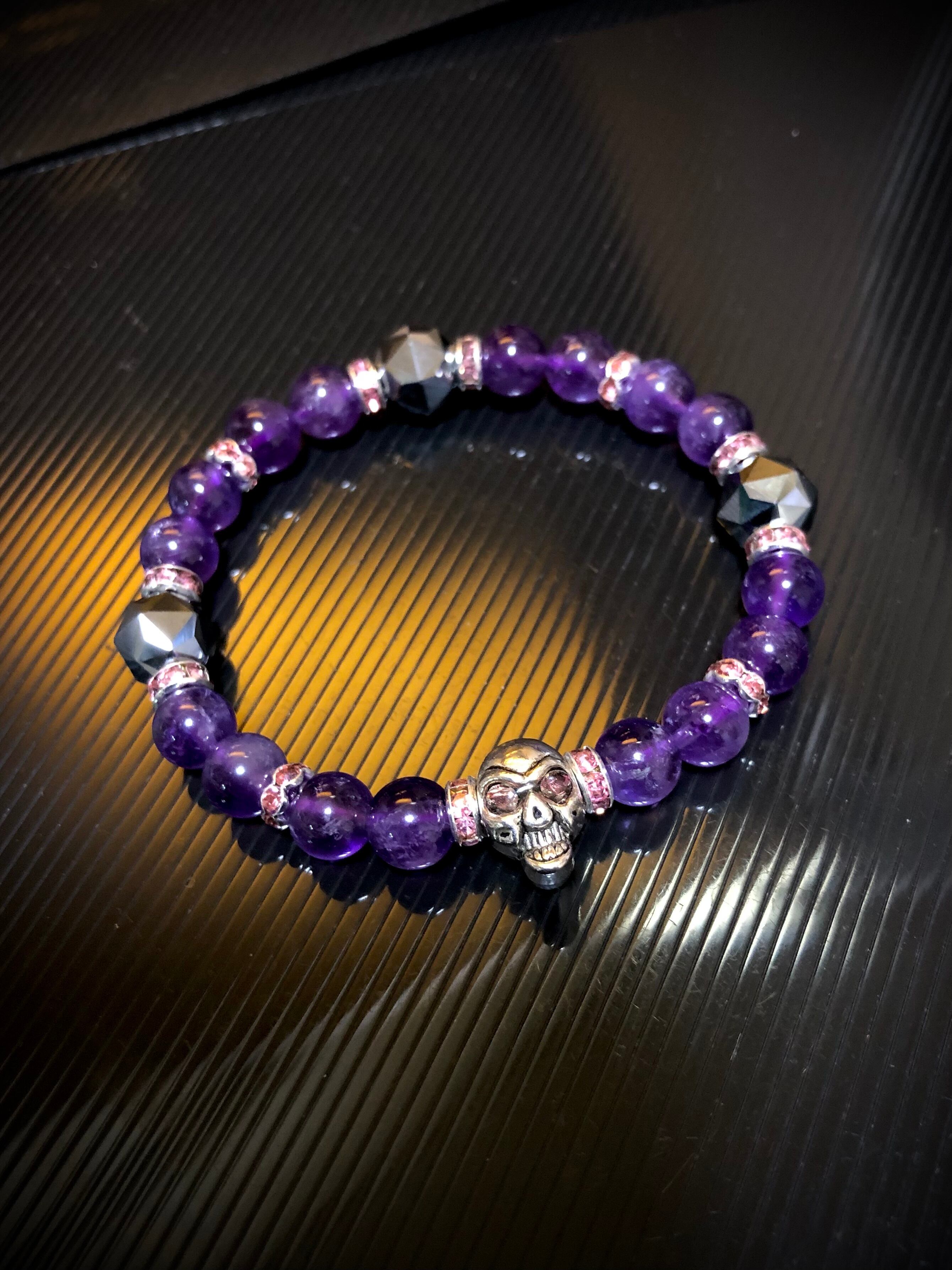 ドクロ メタル アメジスト テラヘルツ鉱石 天然石ブレスレット