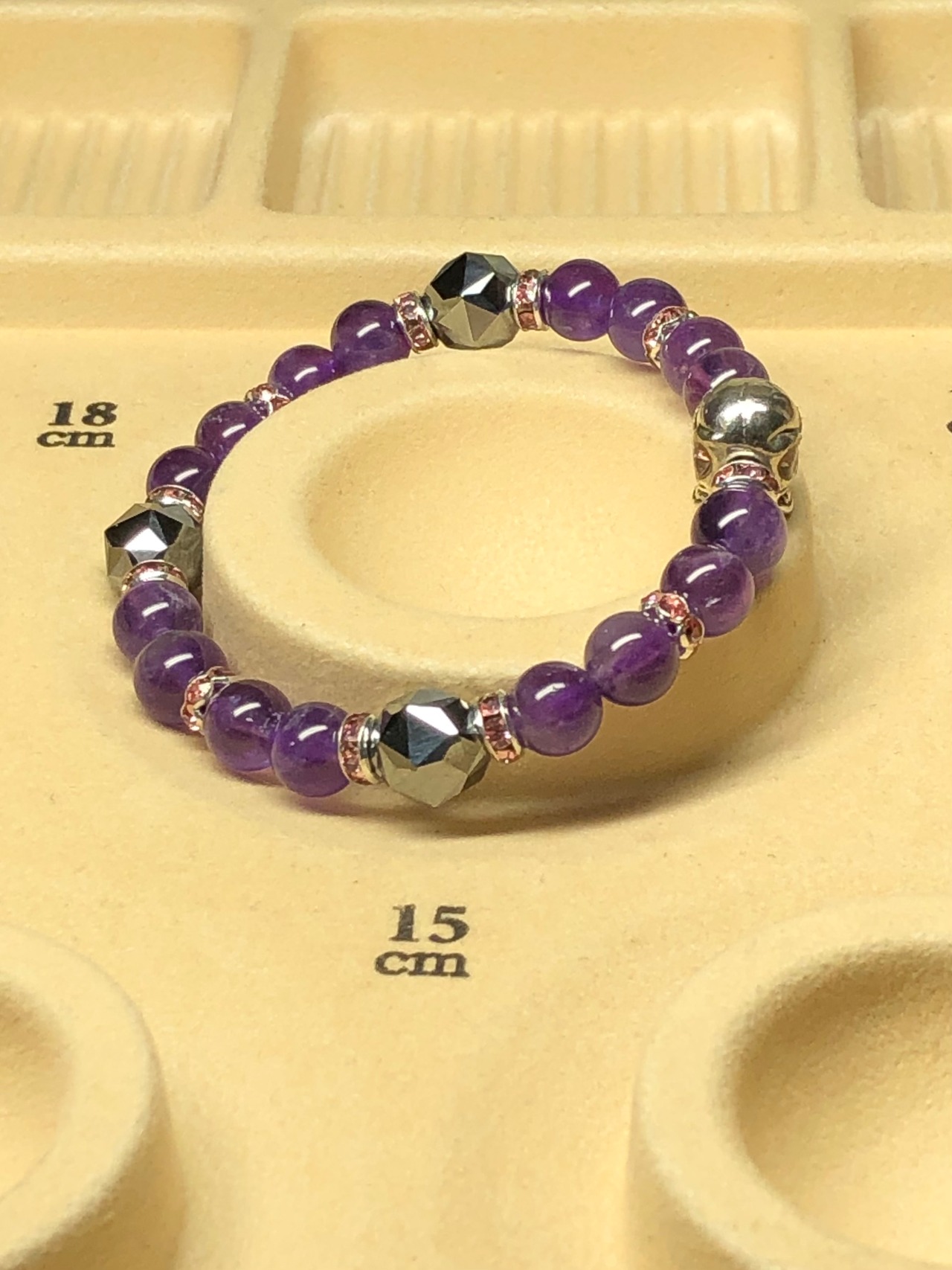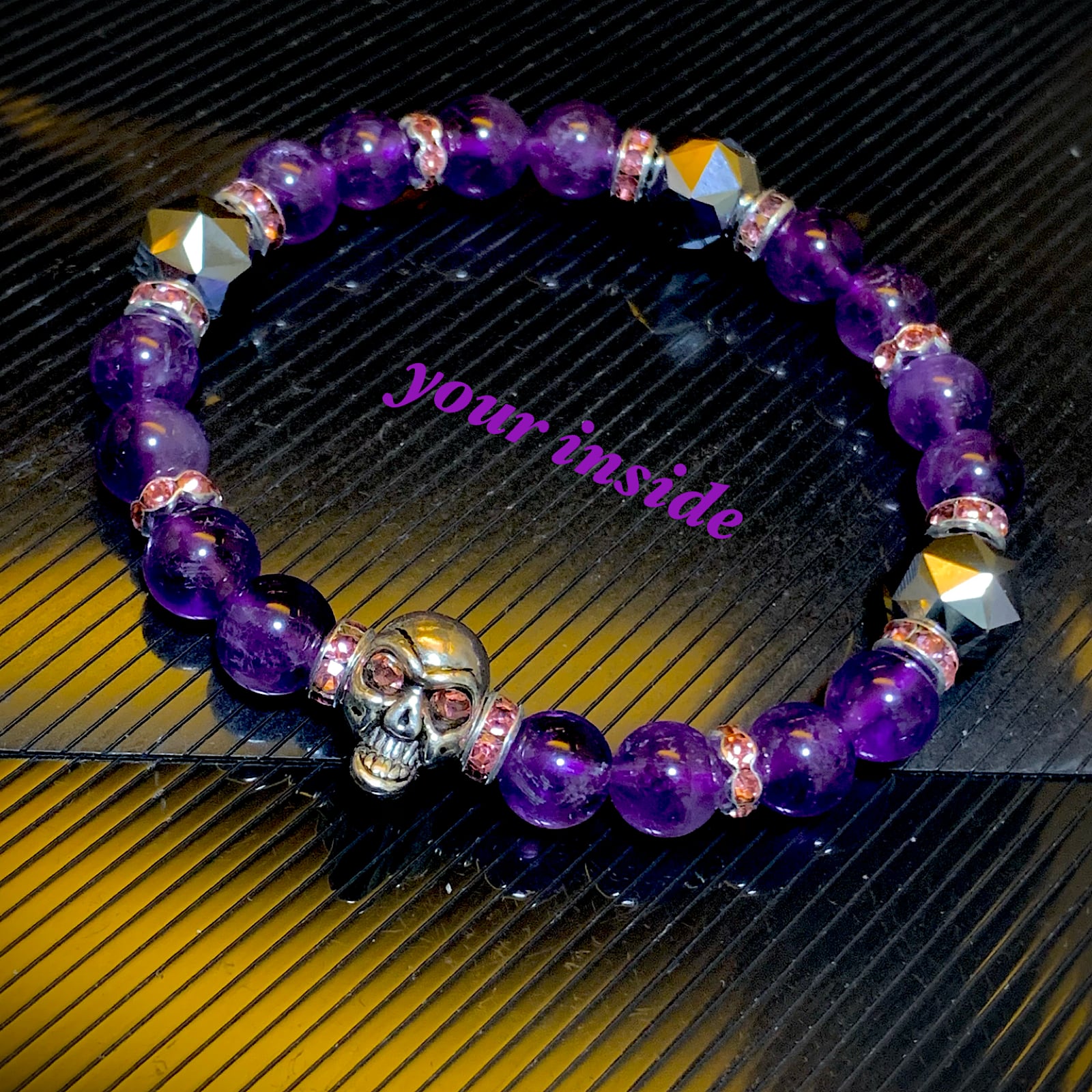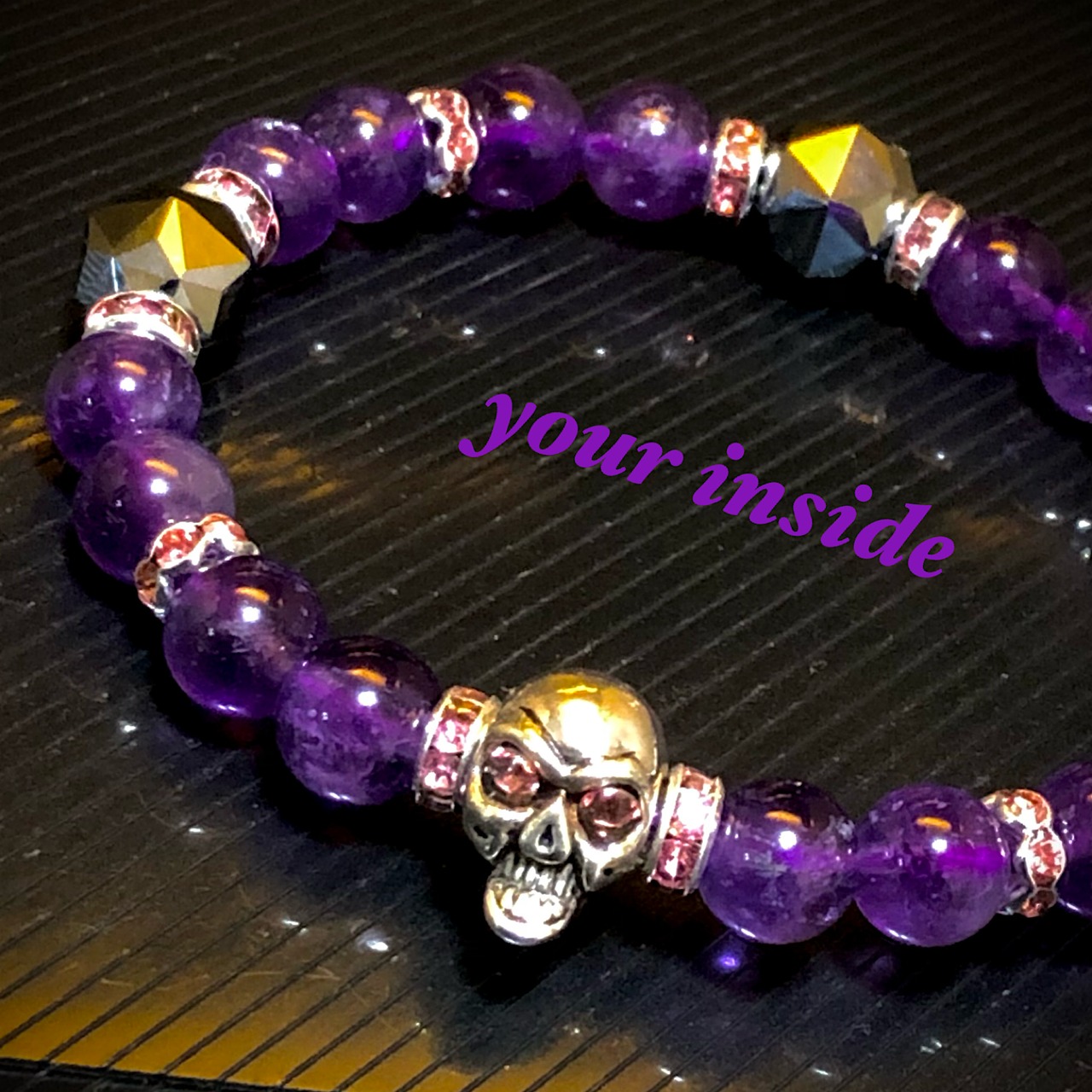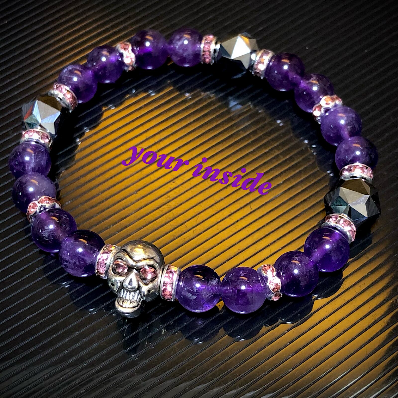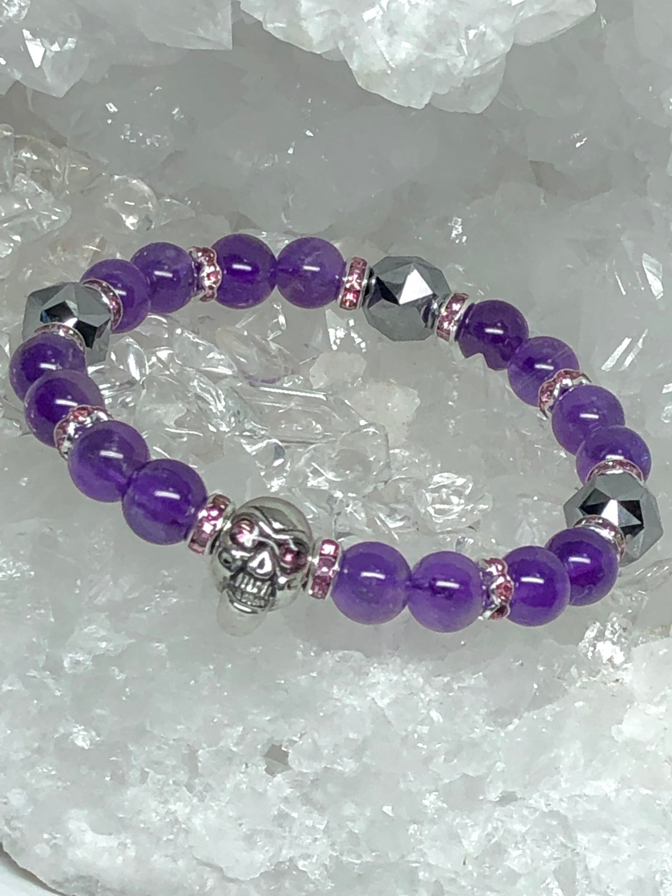 ドクロ メタル アメジスト テラヘルツ鉱石 天然石ブレスレット