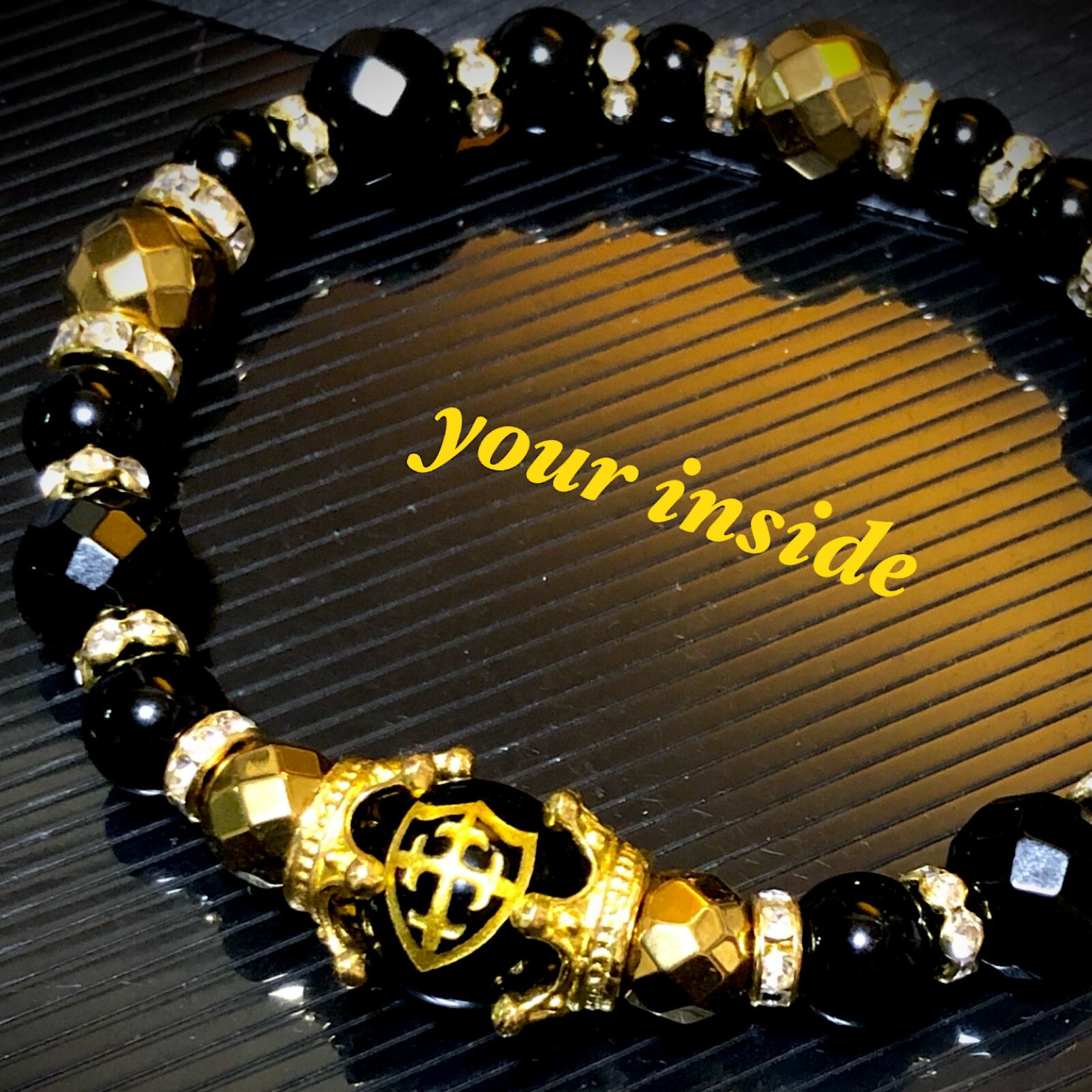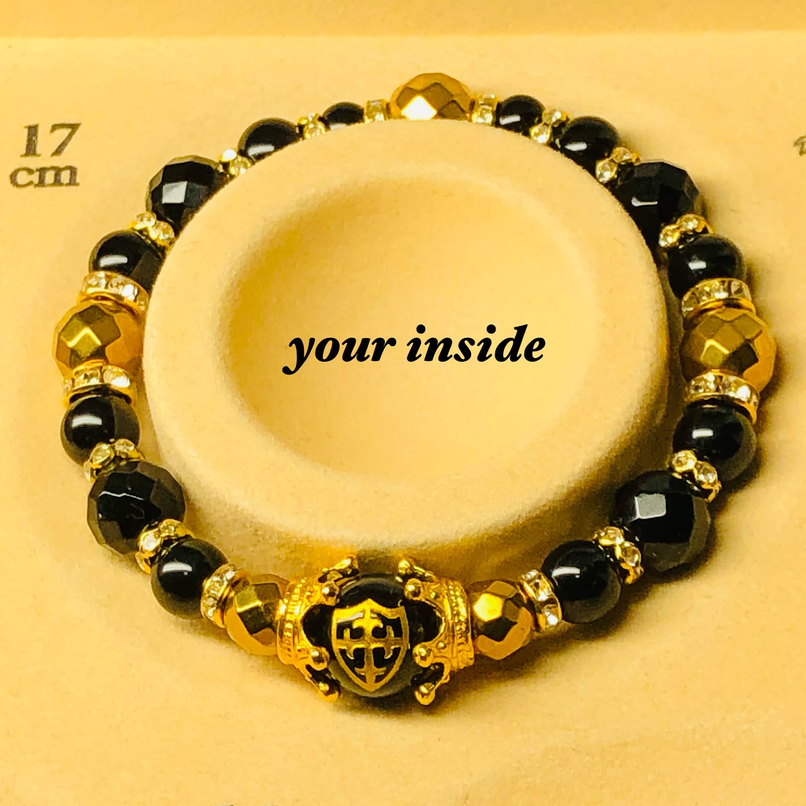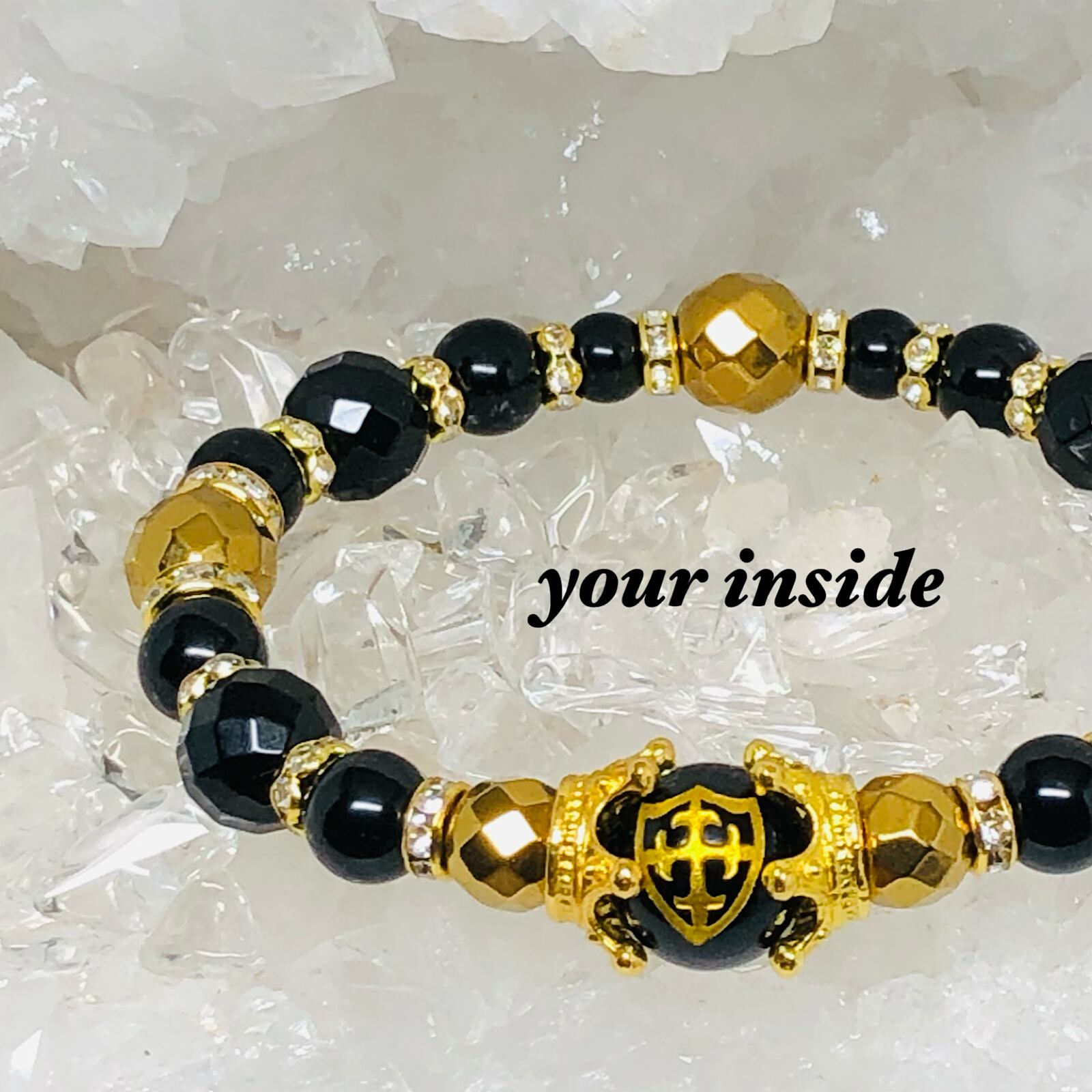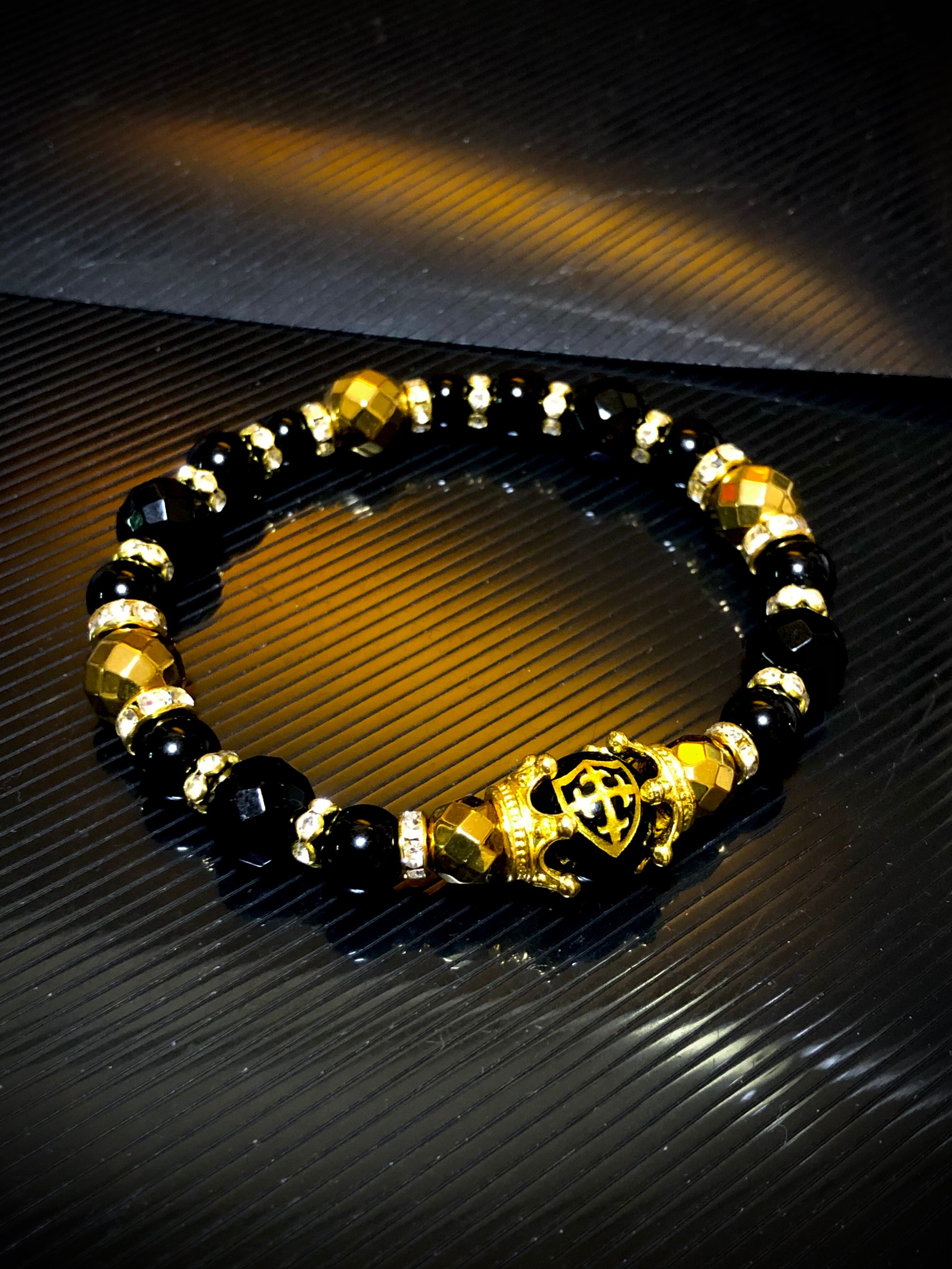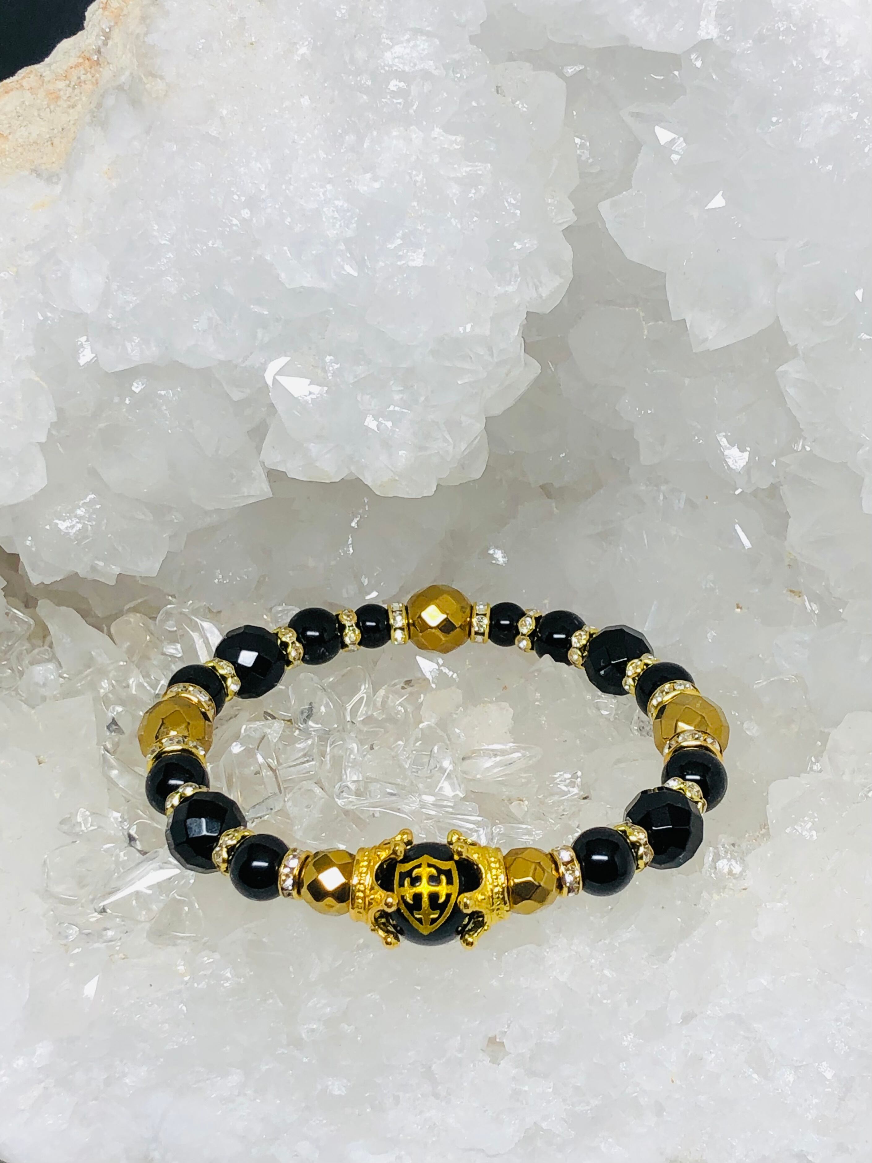 金色 盾 十字架 彫り オニキス 天然石ブレスレット