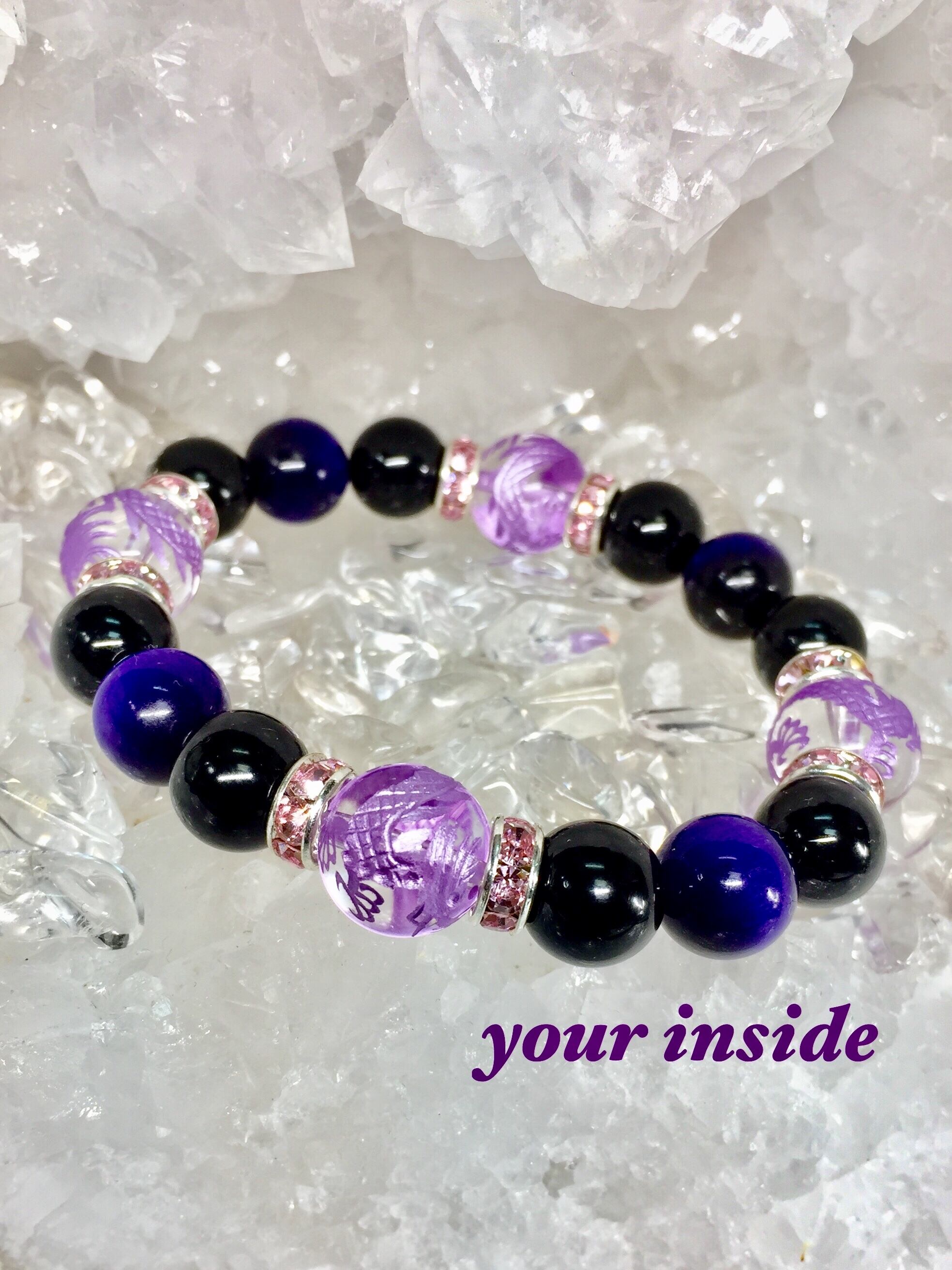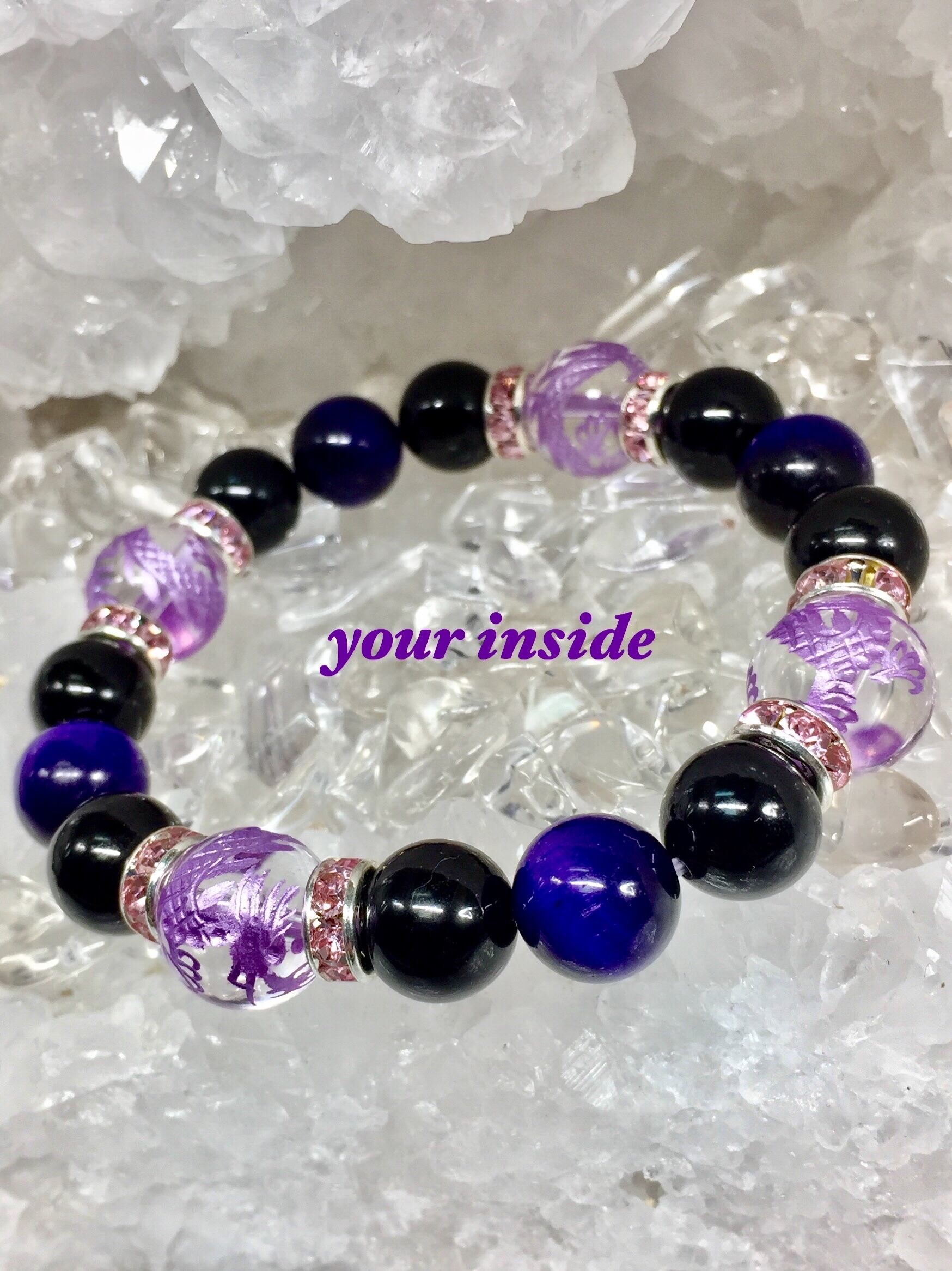 薄紫龍彫り水晶 パープルカラータイガーアイ 天然石ブレスレット