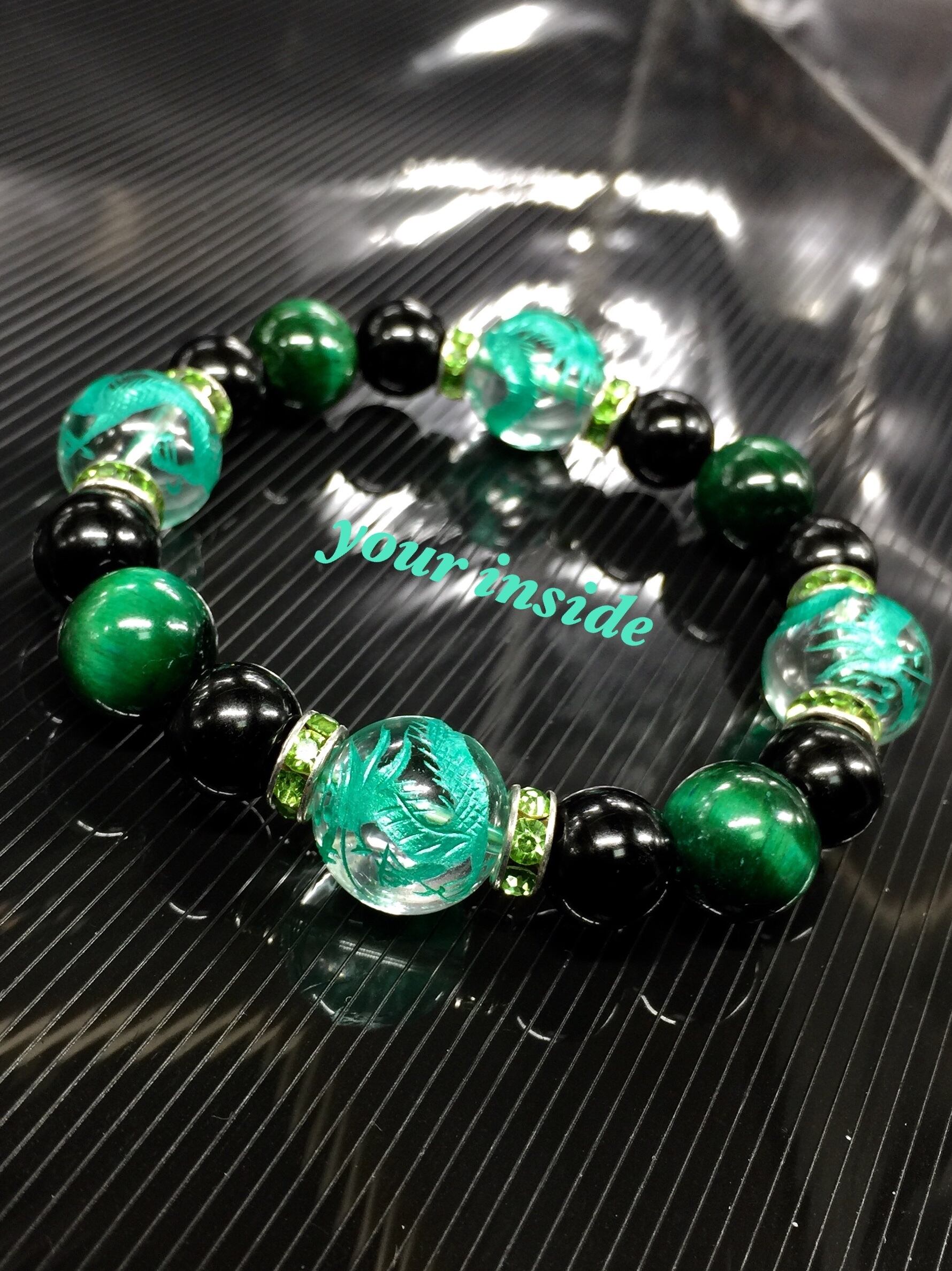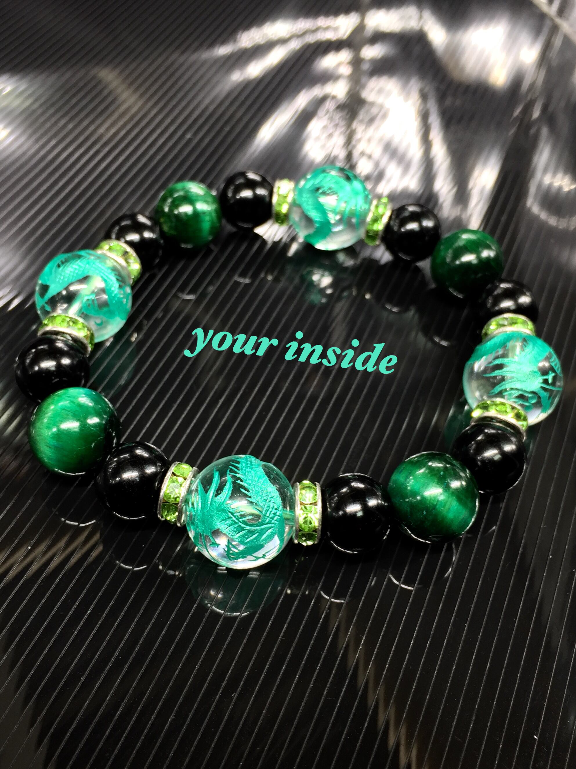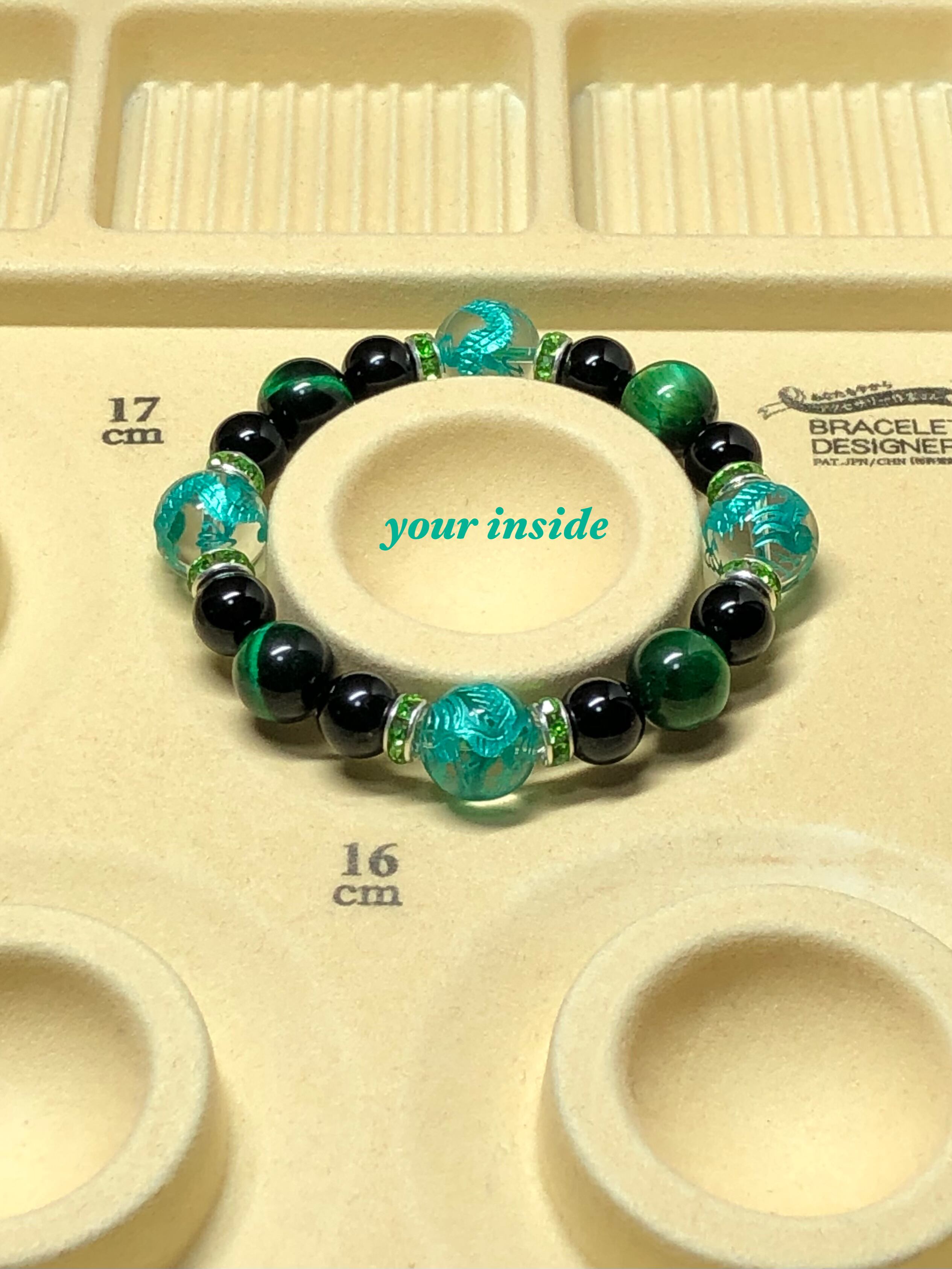 ライトグリーン 龍彫り水晶 グリーンカラータイガーアイ 天然石ブレスレット