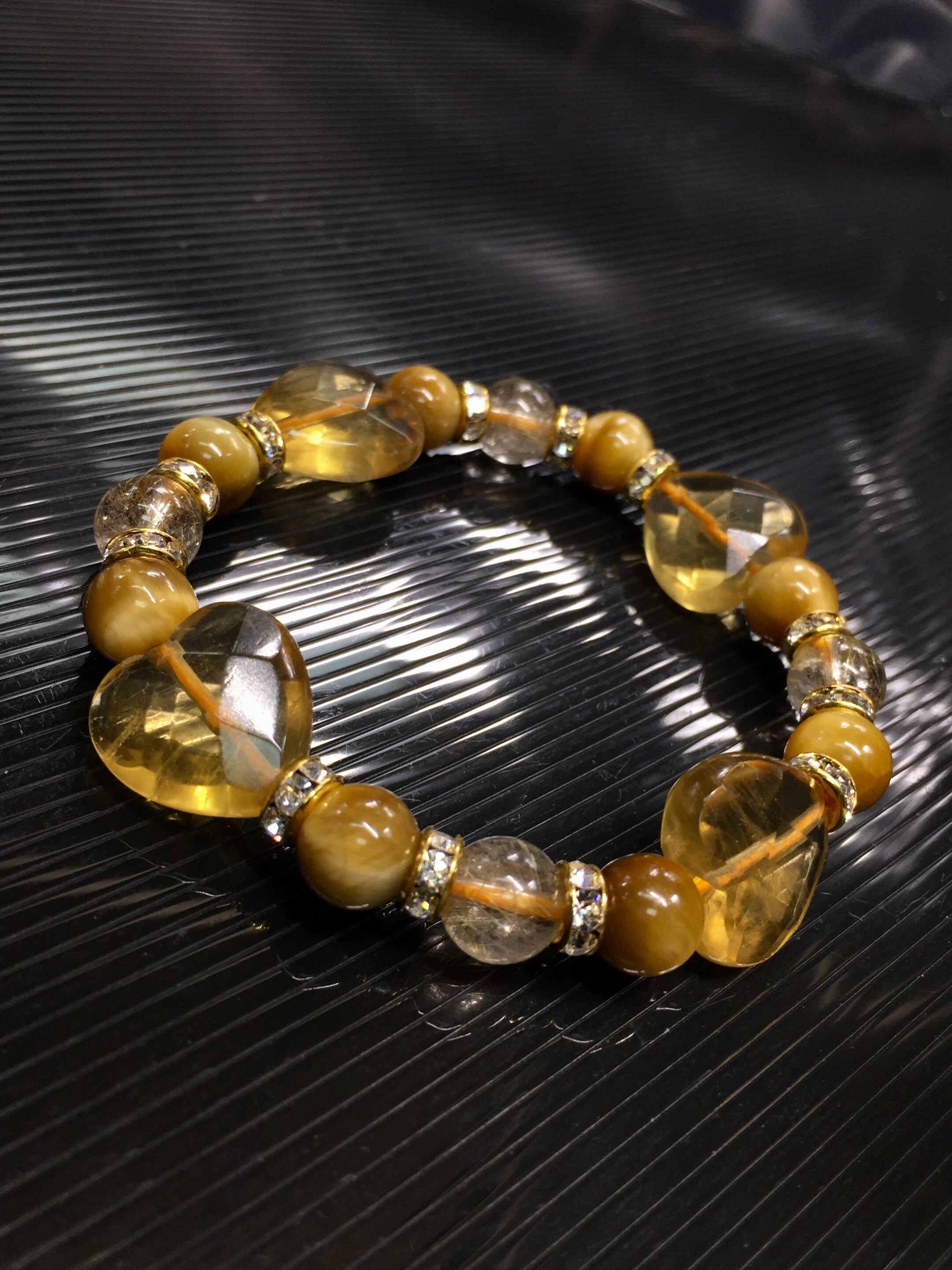 ルチルクォーツ ゴールデンタイガーアイ フローライト 天然石ブレスレット