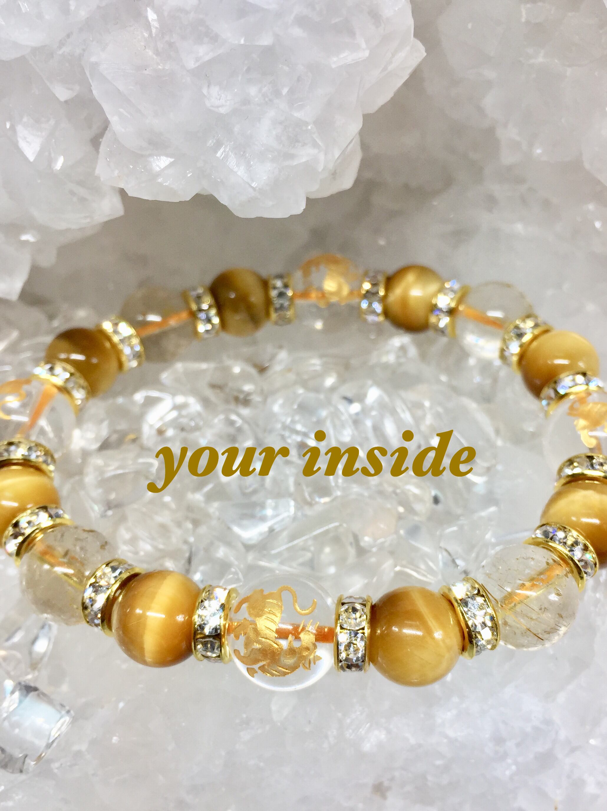 虎金色彫り水晶 ルチルクォーツ天然石ブレスレット