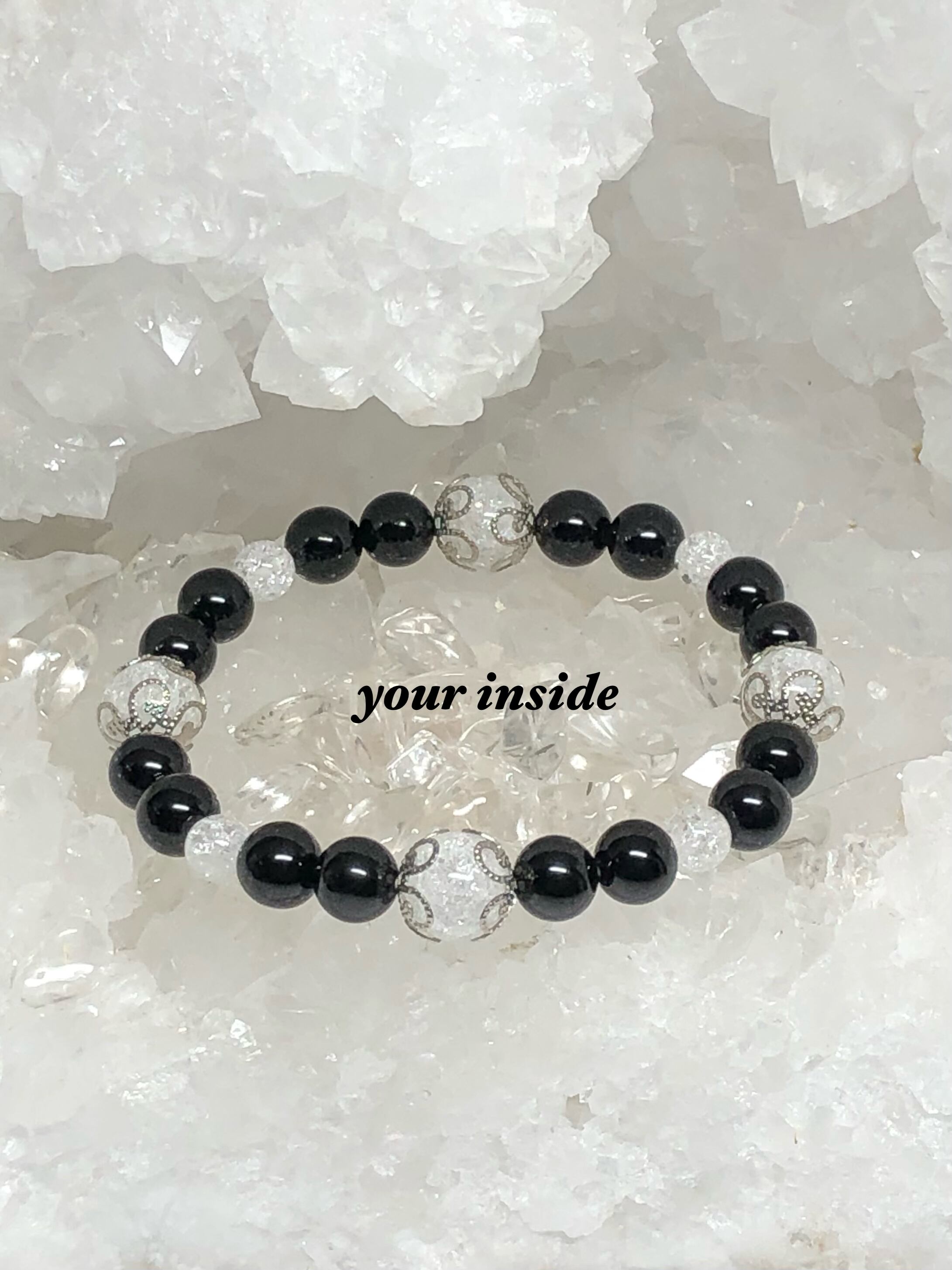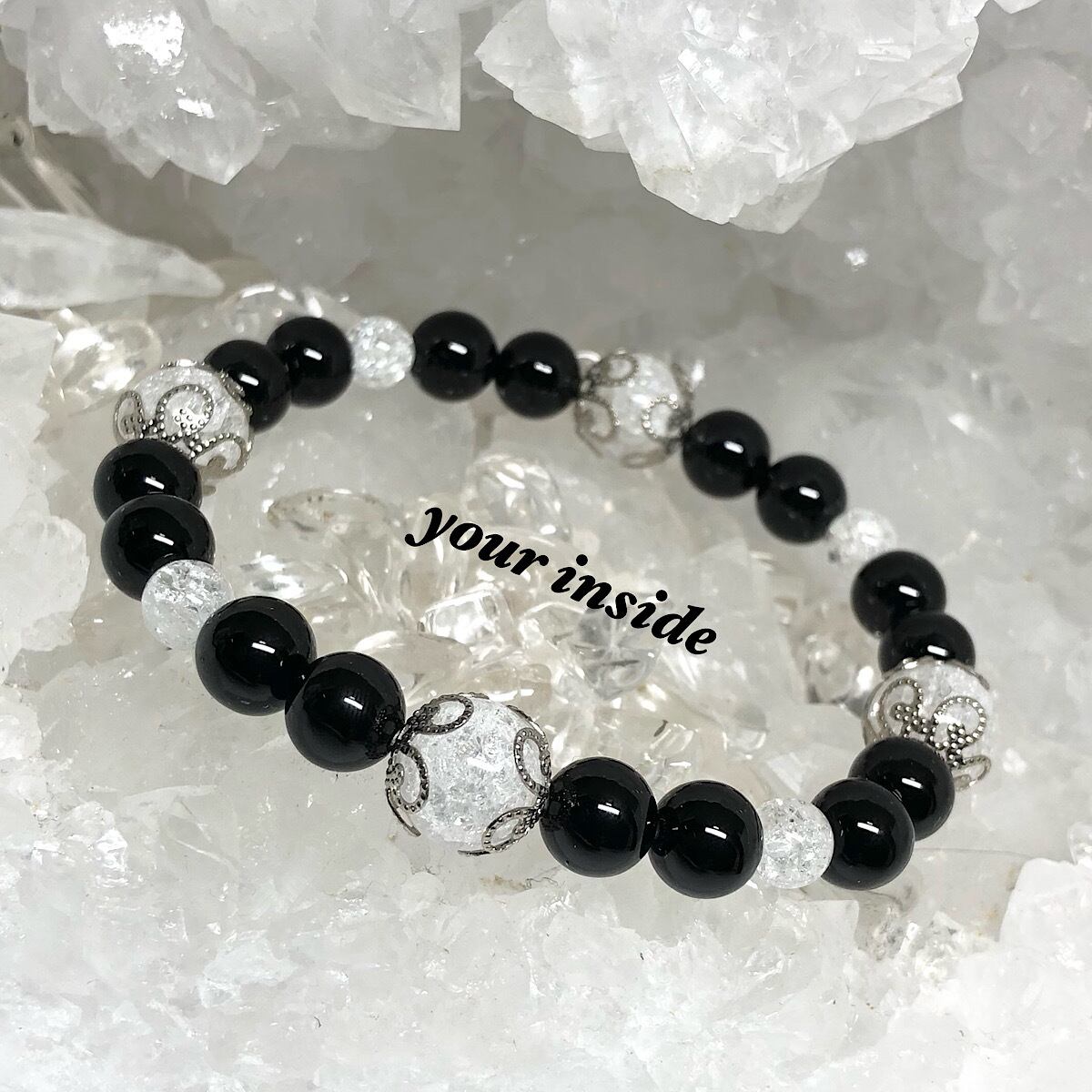 オニキス 爆裂水晶 天然石ブレスレット