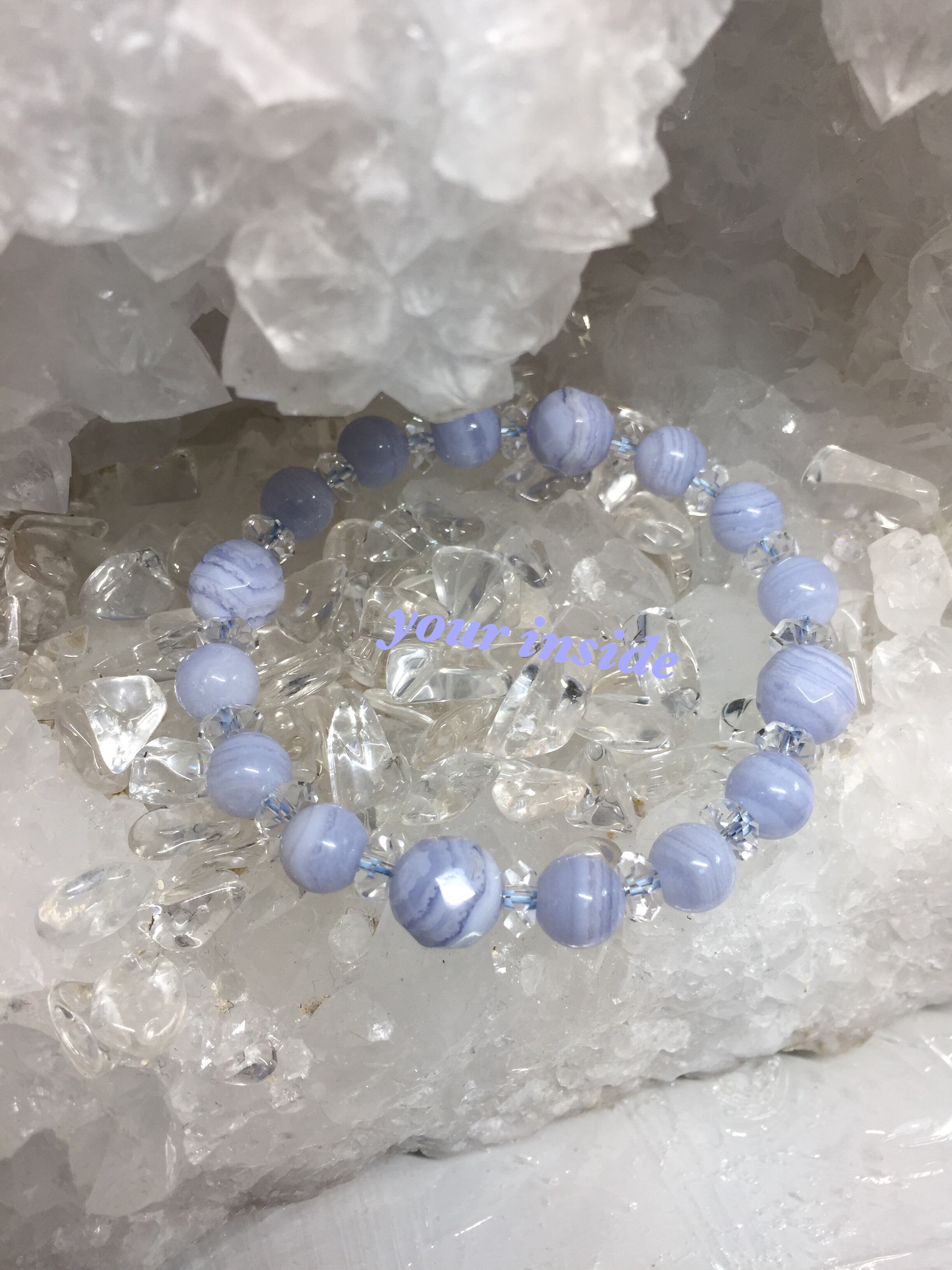 ブルーレースアゲート64面カット デザイン天然石ブレスレット