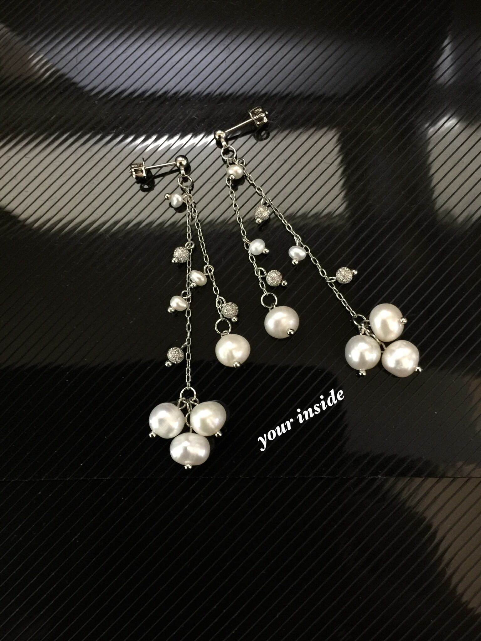 天然石ピアス パワーストーン 淡水パール ホワイト ポテト型 約3〜3.5㎜ 約6.5〜7㎜ ハンドメイド シルバーカラー金具 真珠ピアス ロングピアス ポスト