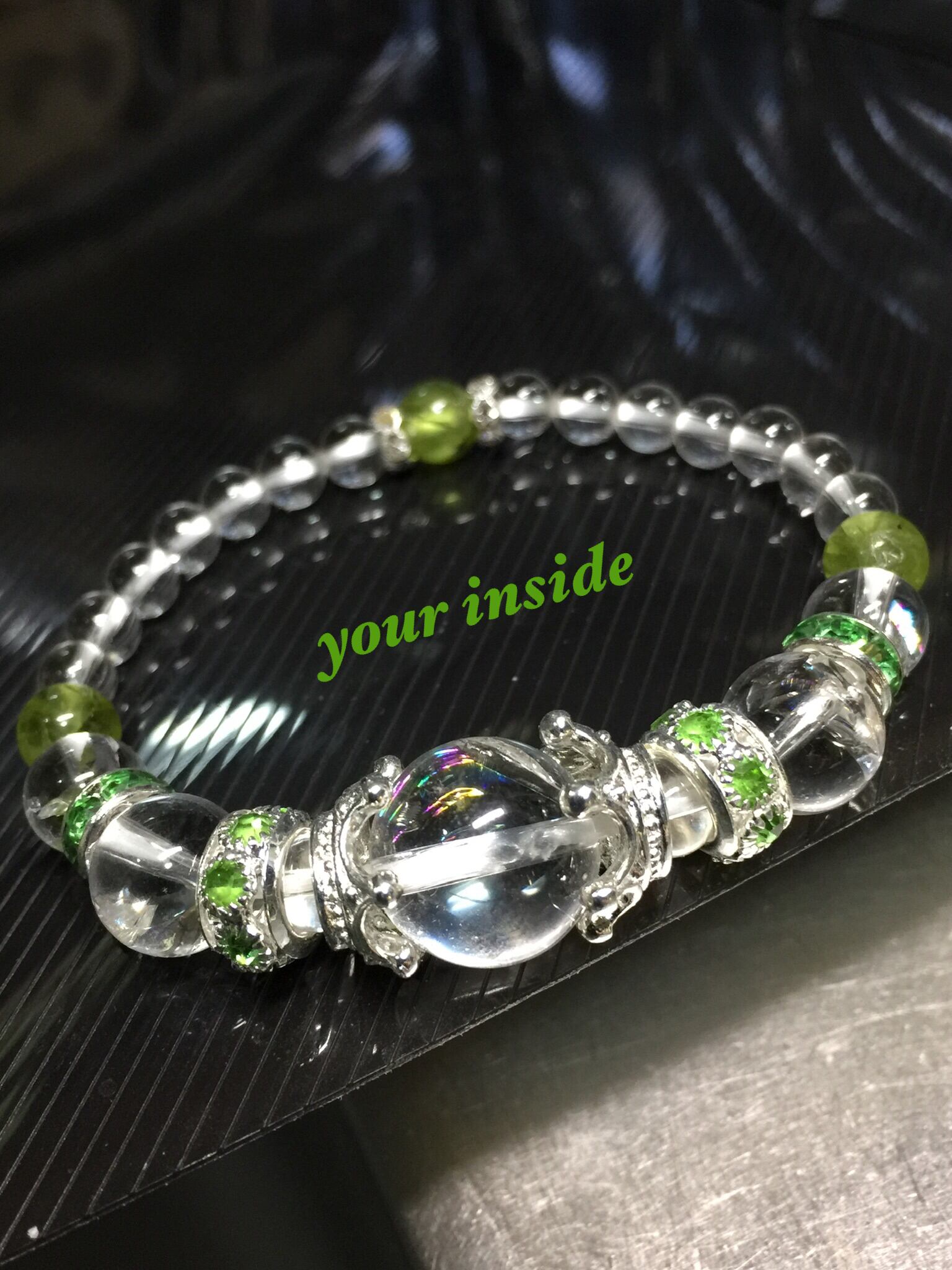 アイリスクォーツ14㎜ 10㎜ 8㎜ 水晶6㎜ ブラジル産 ペリドット7〜7.5㎜ ミャンマー産 王冠ビーズキャップ ドーナツロンデル ロンデルグリーンカラー8㎜シルバーカラー6㎜ ハンドメイド 内径約15cm