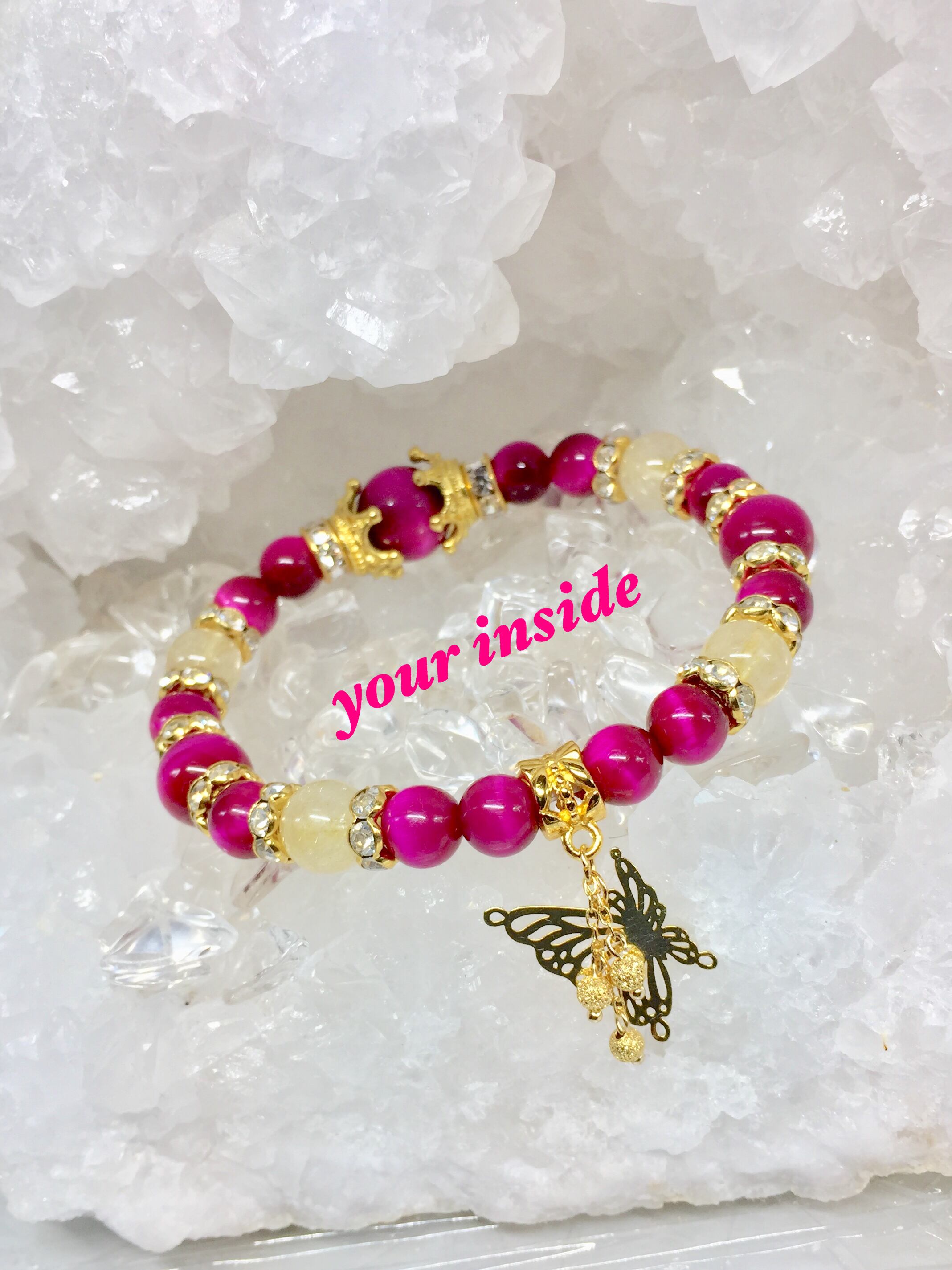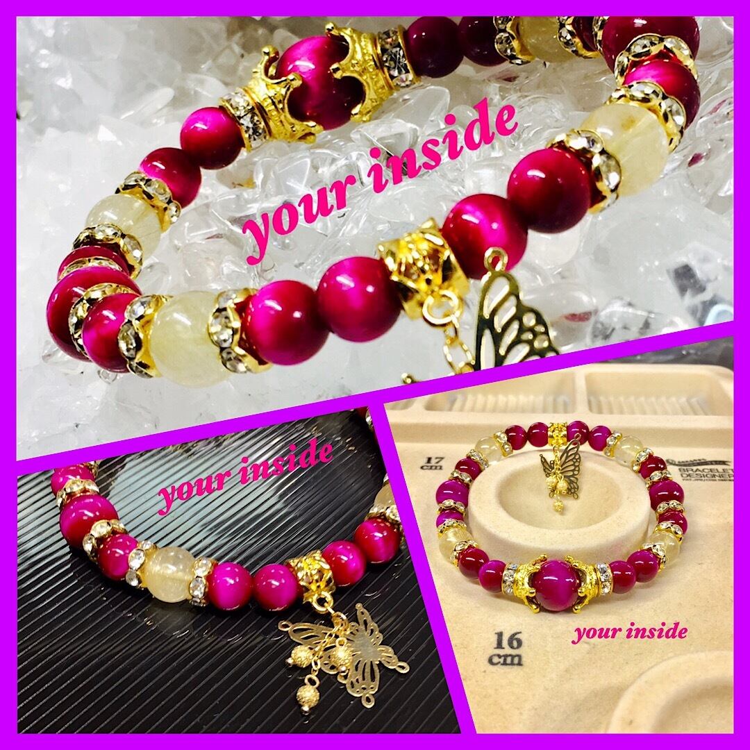 ピンクタイガーアイ ルチルクォーツ デザイン 天然石ブレスレット