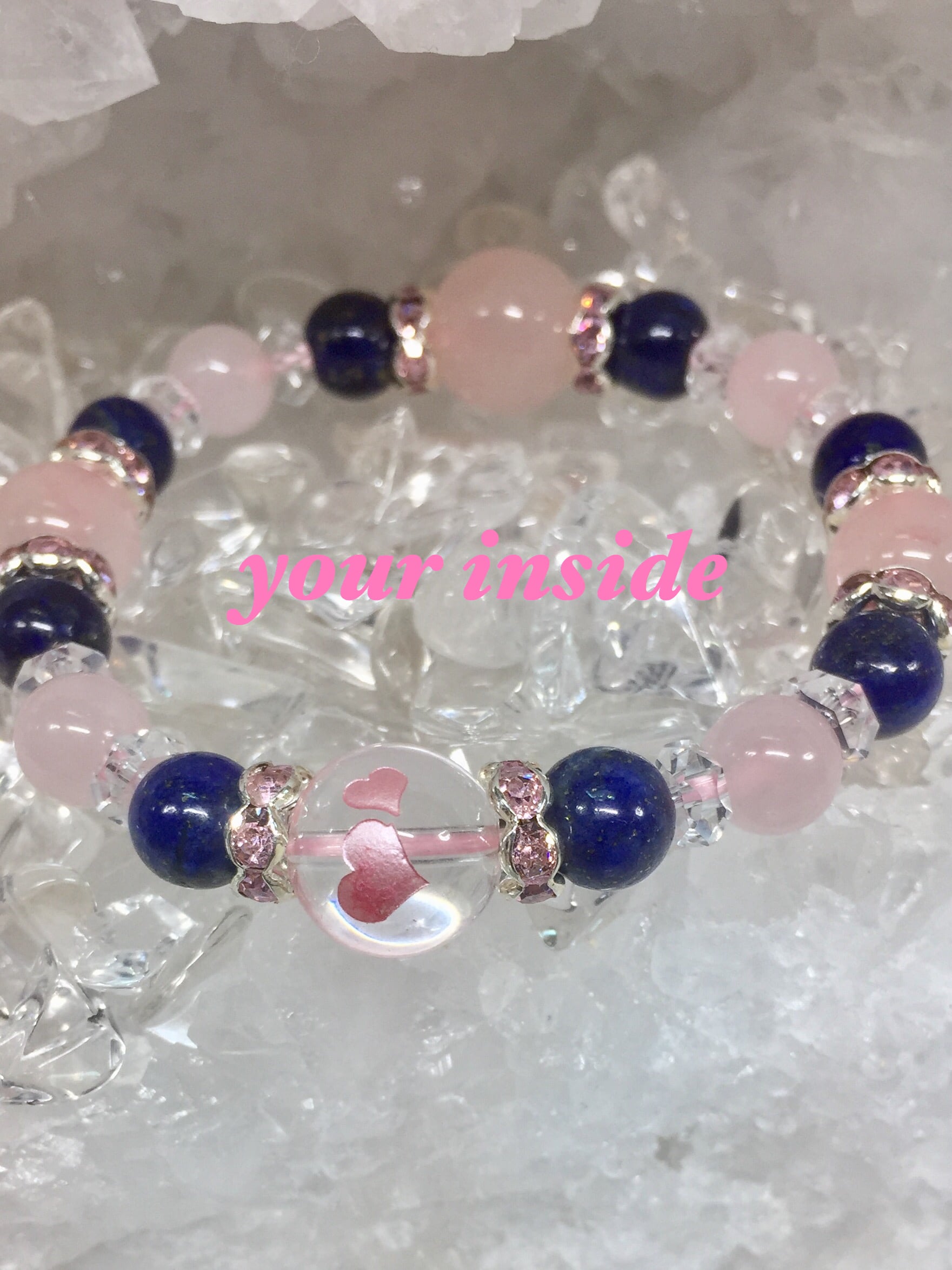 ラピスラズリ ピンク 彫り ハート柄 水晶 天然石ブレスレット