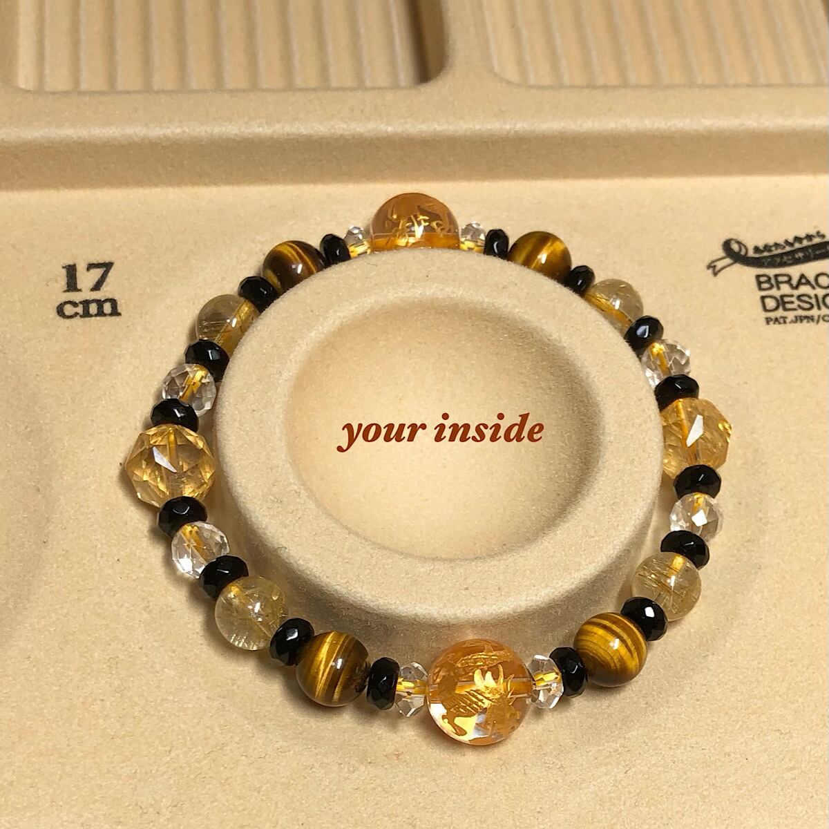 ブレスレットはオペロンゴムで作られ伸縮いたします。