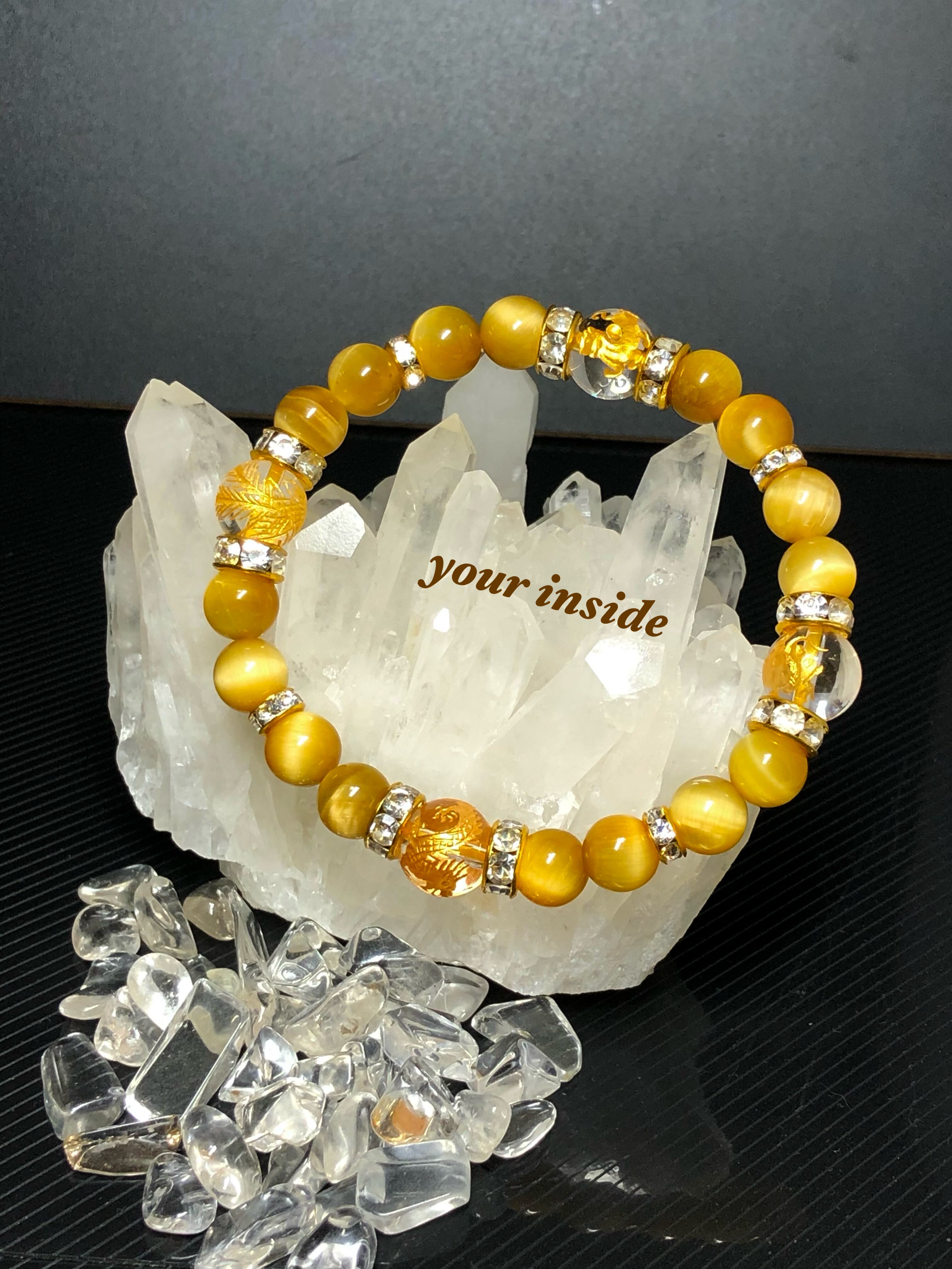 四神獣水晶 金色彫り ゴールデンタイガーアイ 天然石ブレスレット