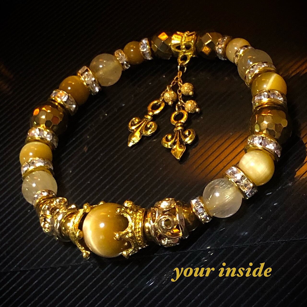 ゴールデンタイガーアイ ルチルクォーツ デザイン 天然石ブレスレット