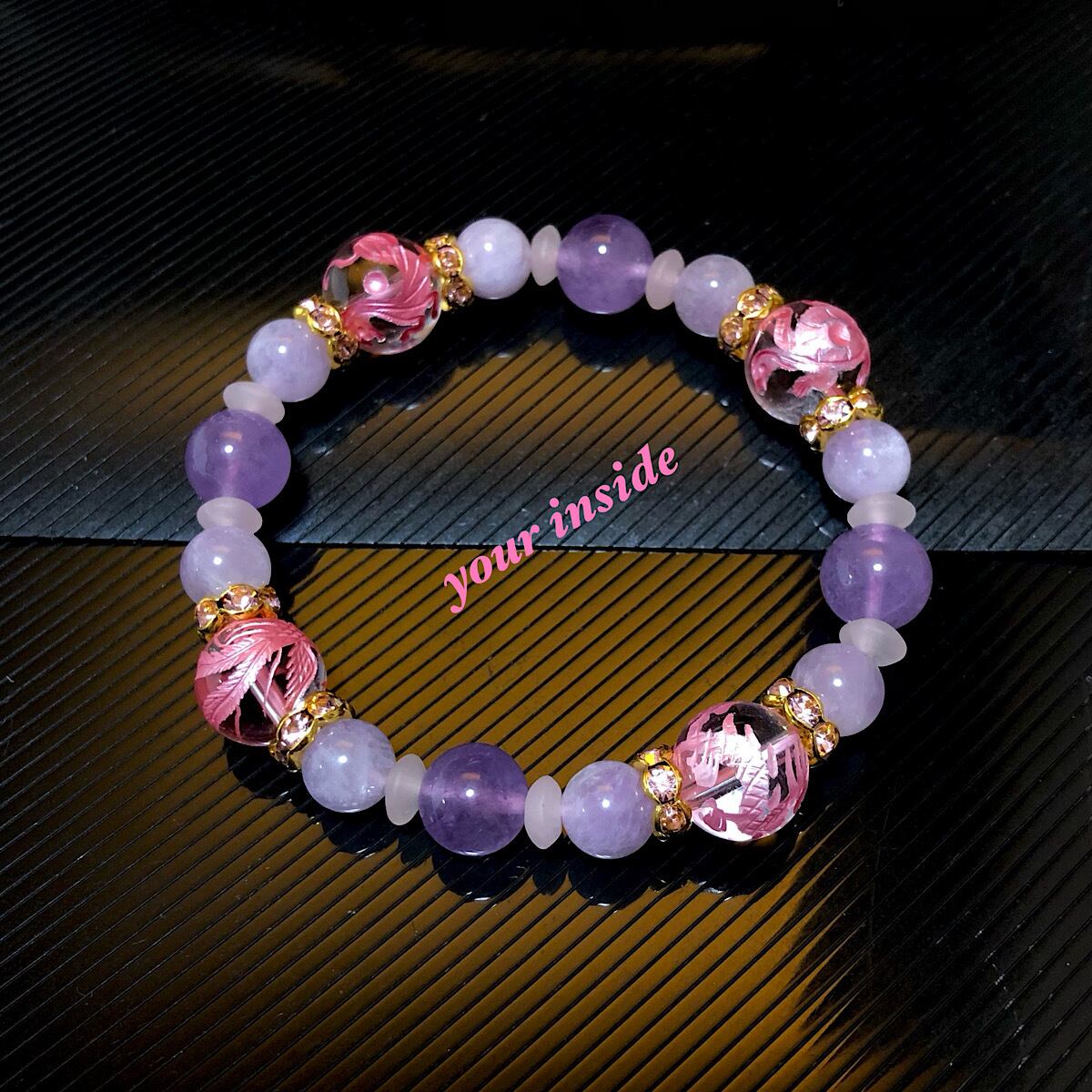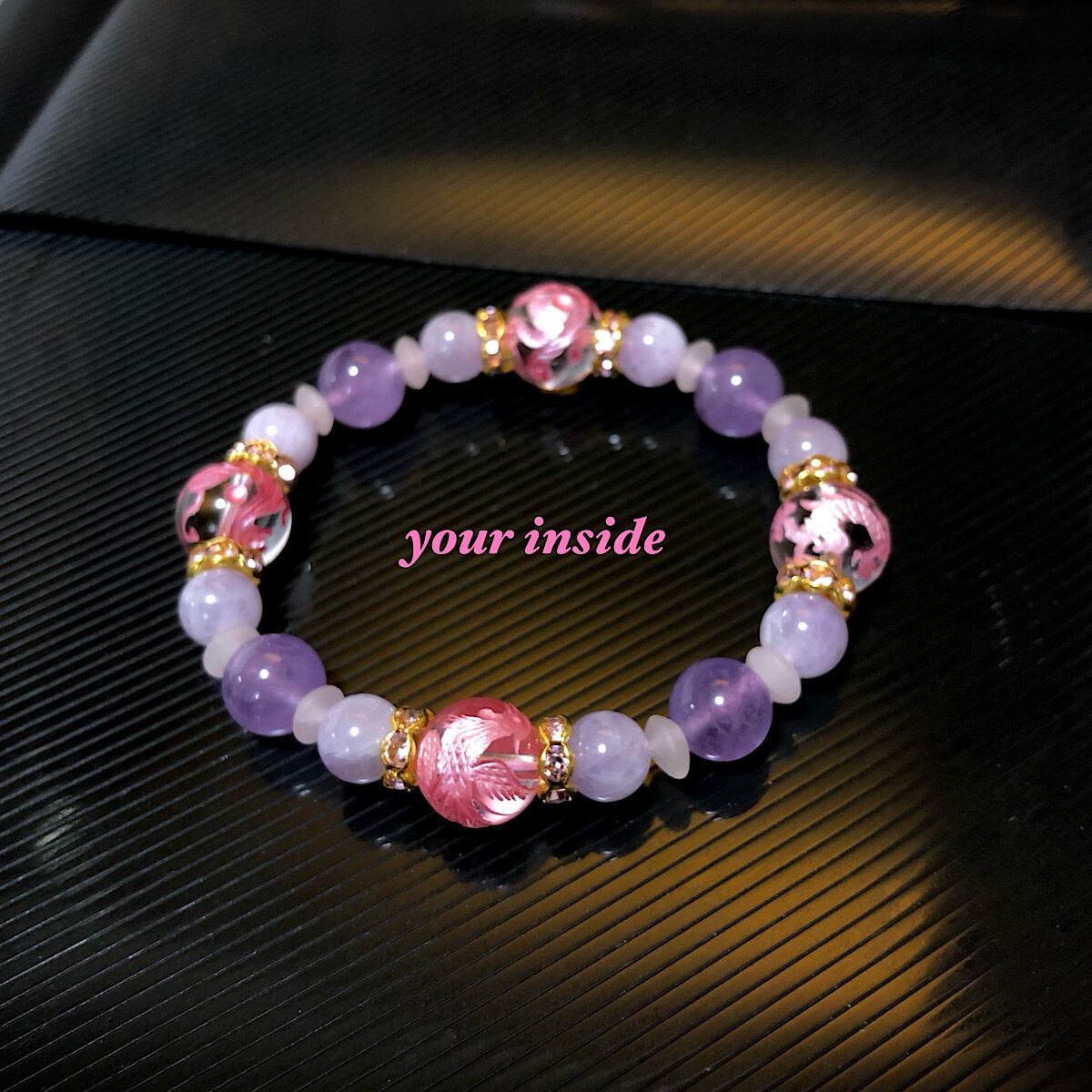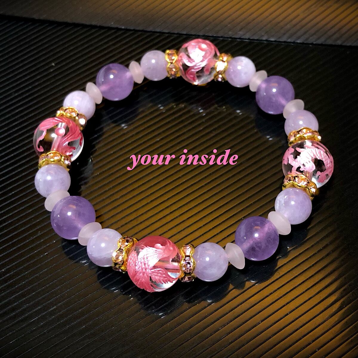 四神獣 ピンク彫り 水晶 ラベンダー アメジスト 天然石 ブレスレット