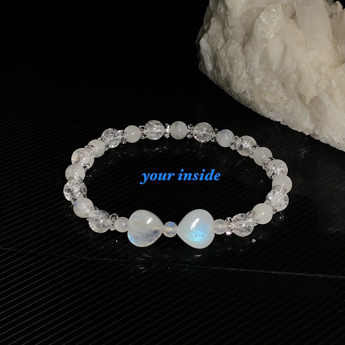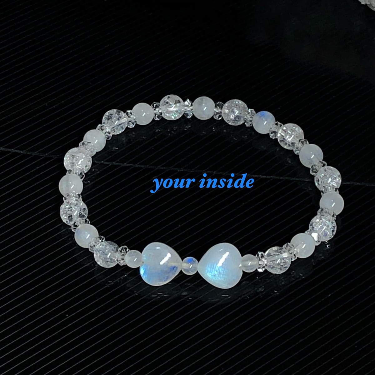ブルームーンストーン ハート リボン 天然石ブレスレット