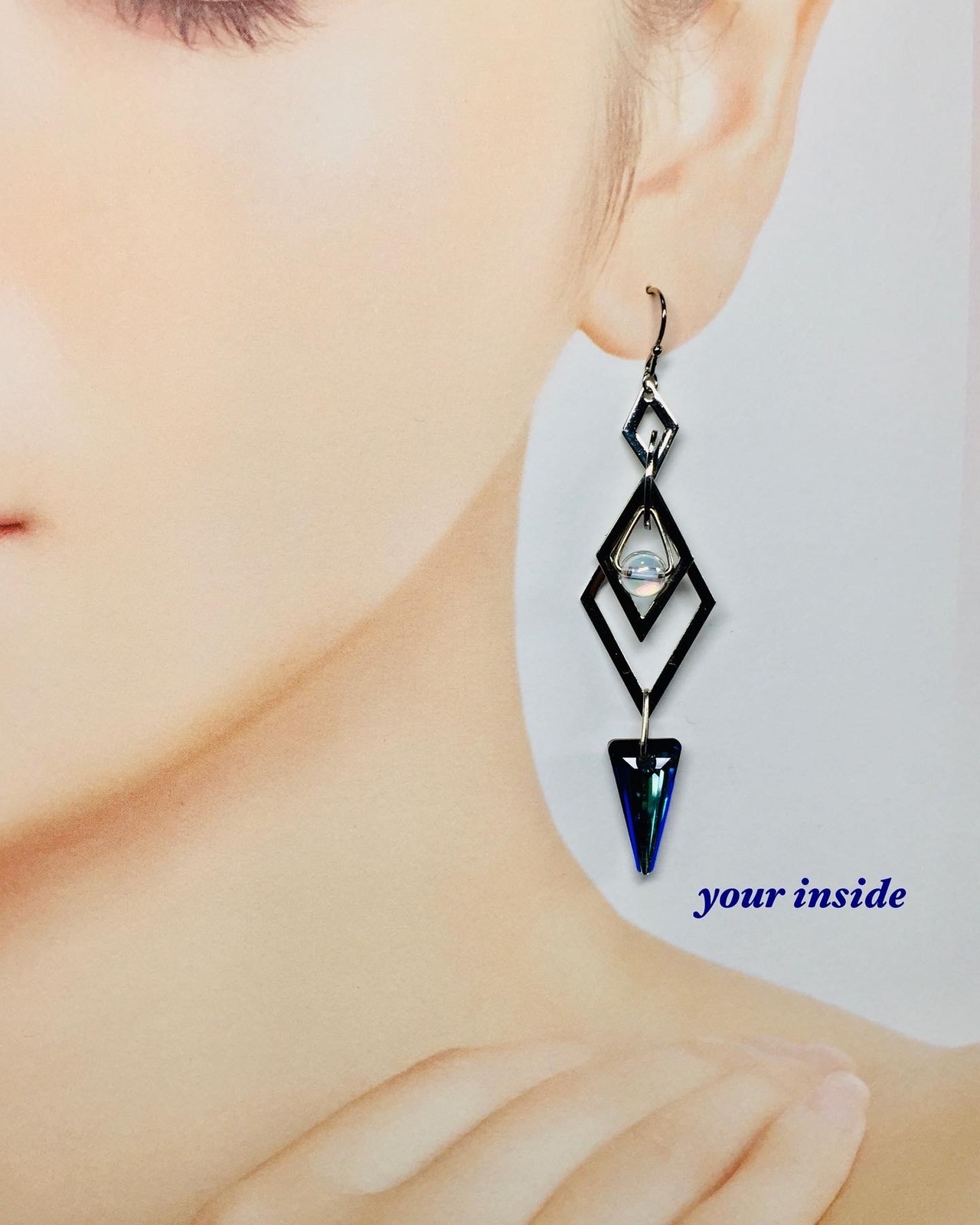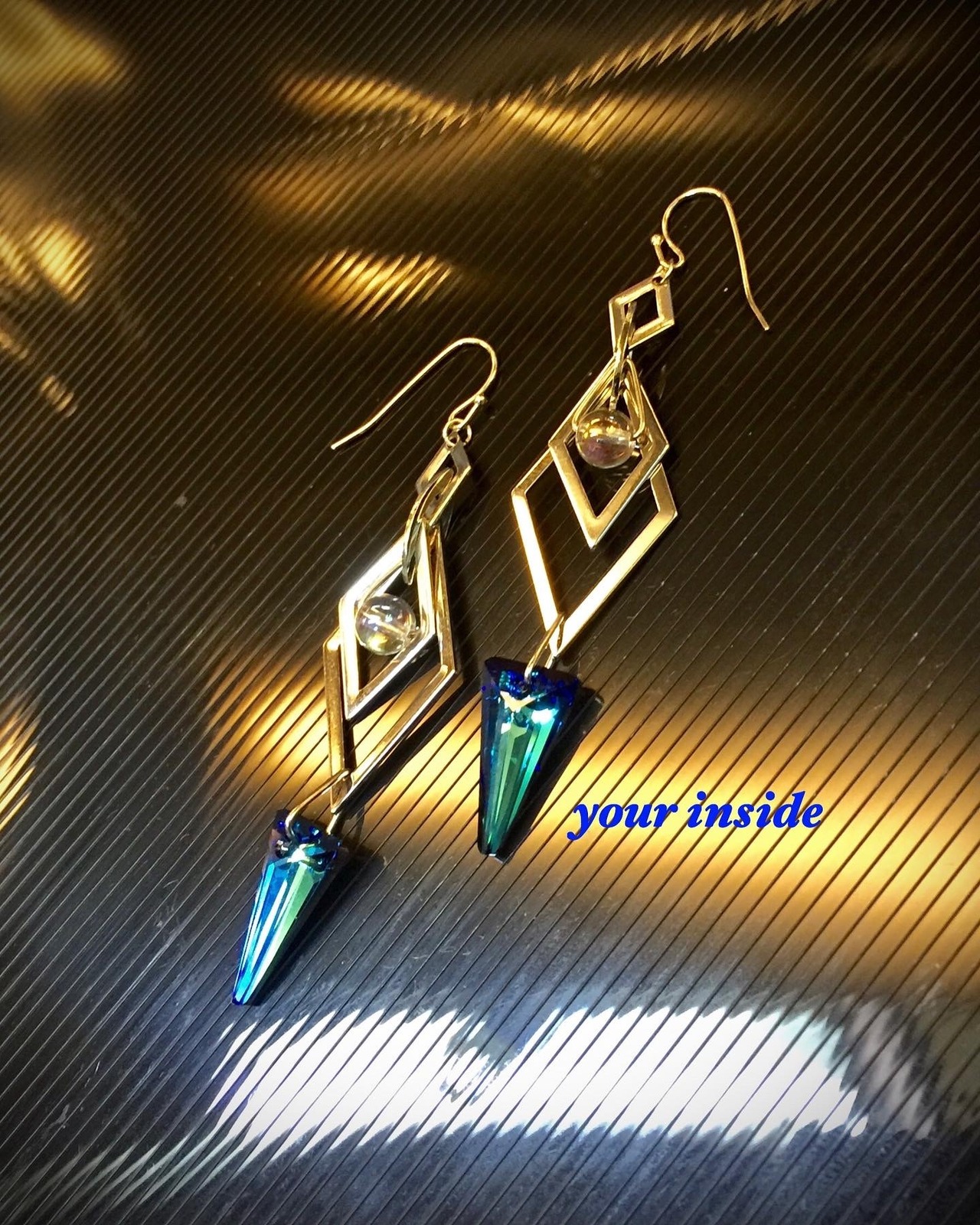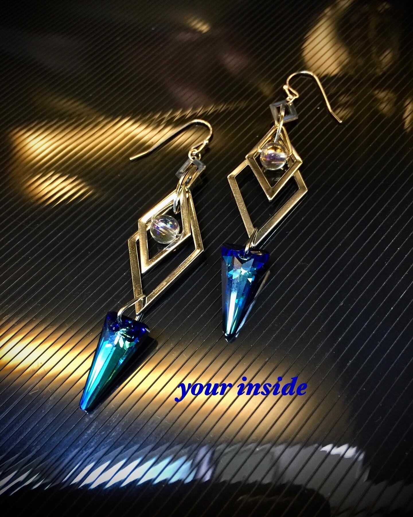 スワロフスキー バミューダブルー 約18㎜ スパイク アイソサリーズ コスモオーラ 約6㎜ ブラジル産 コンビネーションメタルパーツ 菱形 4連 1穴 約45㎜ RC ハンドメイド フックピアス