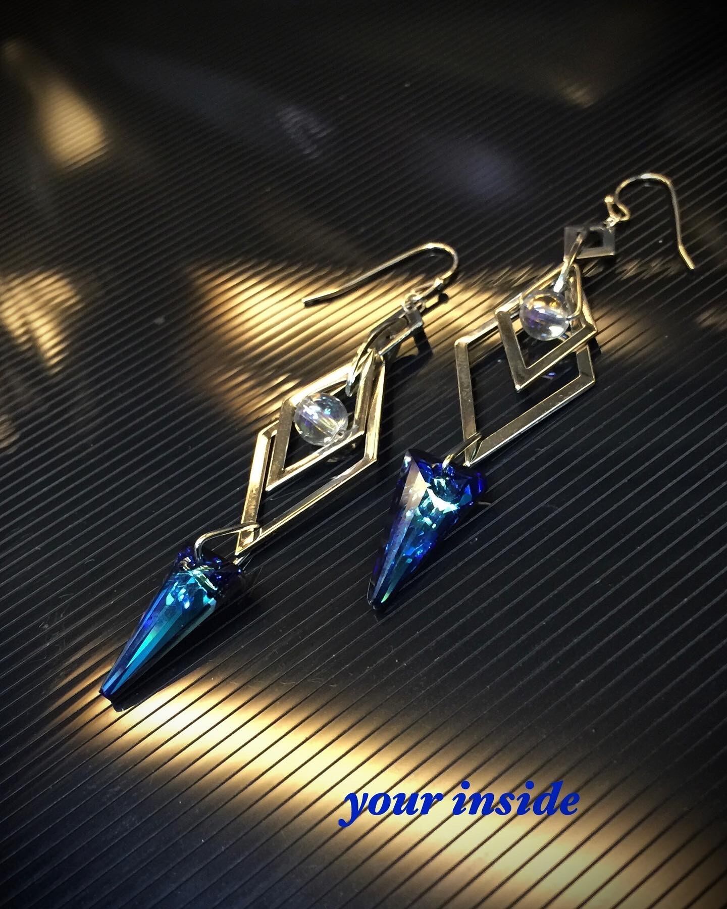スワロフスキー バミューダブルー スパイク アイソサリーズ コスモオーラ 天然石ピアス