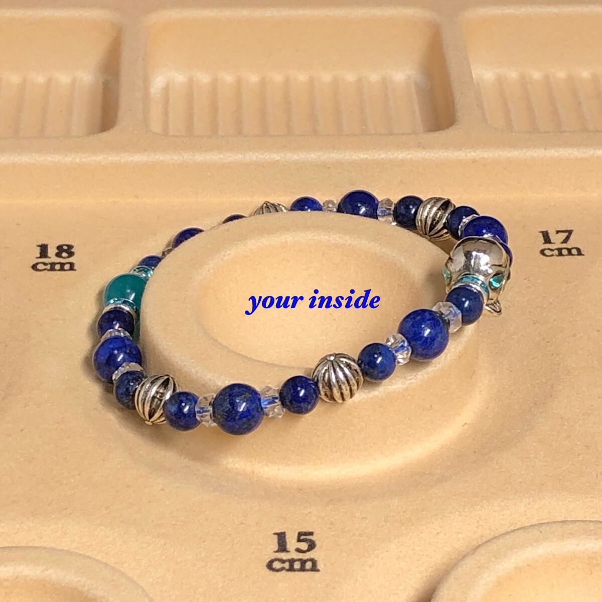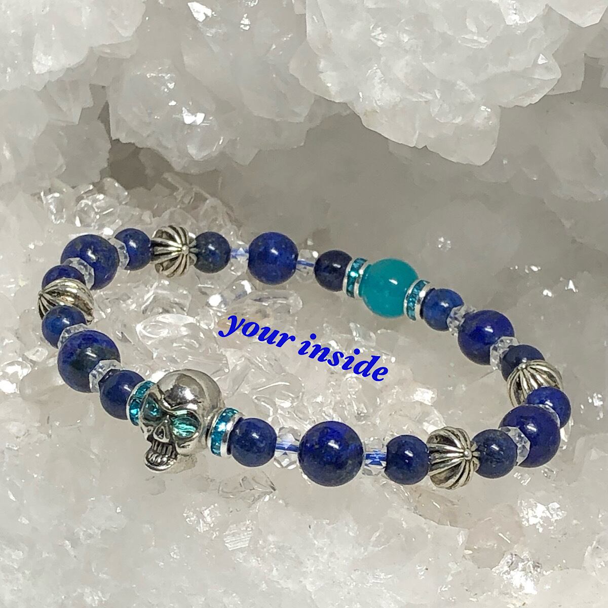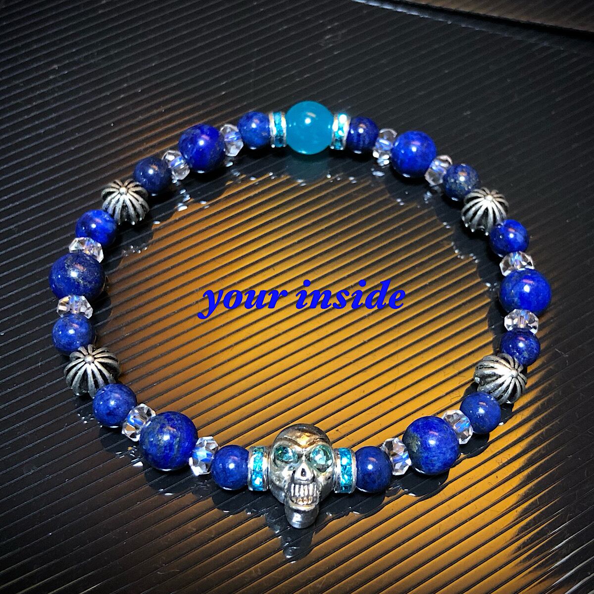ドクロ メタル ラピスラズリ 天然石 ブレスレット