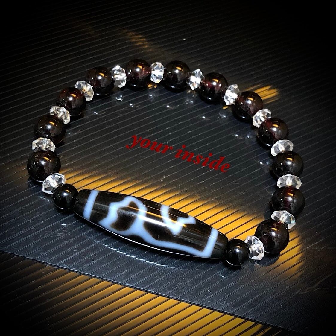 また天珠の間に6mm珠のオニキスが挟んであります。