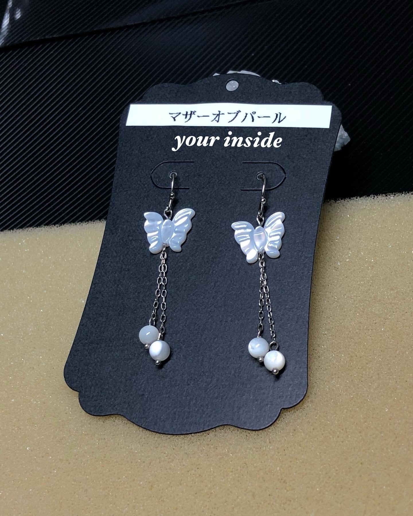 マザーオブパール バタフライ 蝶々 約10×12×2.5mm 丸珠 約4㎜ オーストラリア産