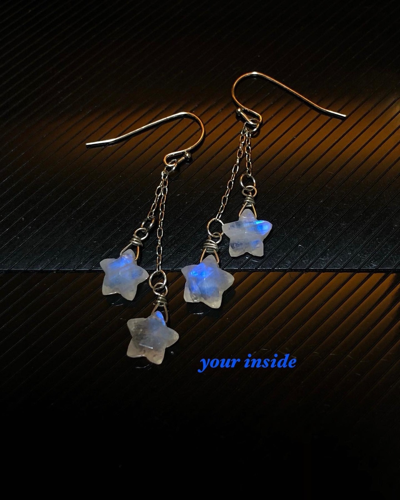 ブルームーンストーン スター 星型 約8㎜ インド産 ハンドメイド チェーン式 セミロング フックピアス