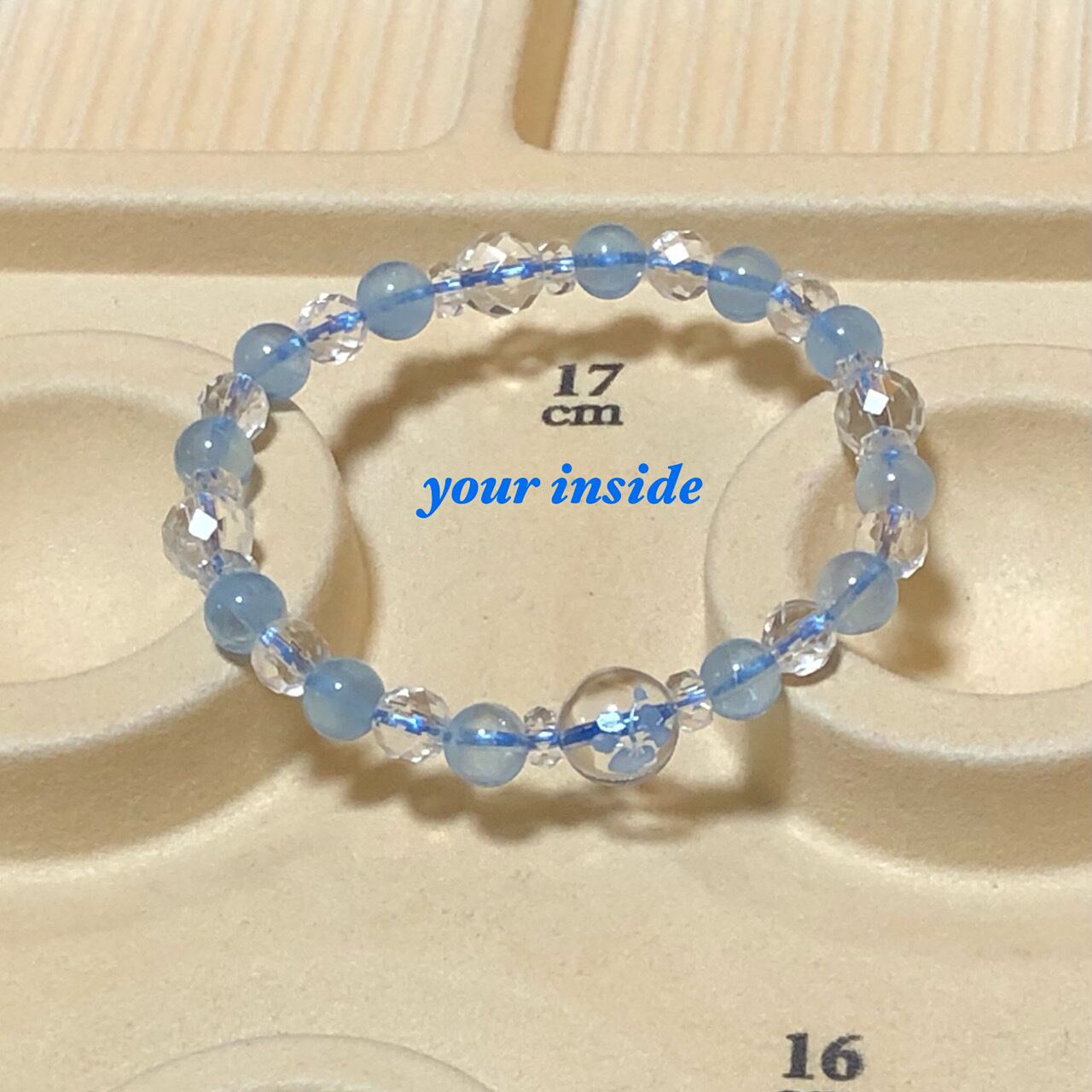 ブルー彫り ハイビスカス水晶 アクアマリン 天然石ブレスレット
