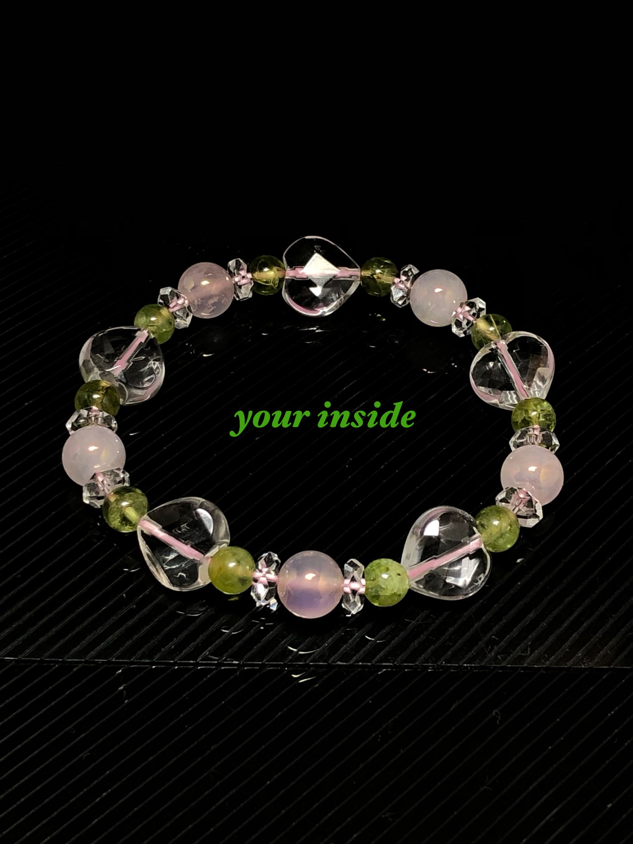 ペリドット クリスタル ハートカット デザイン 天然石ブレスレット