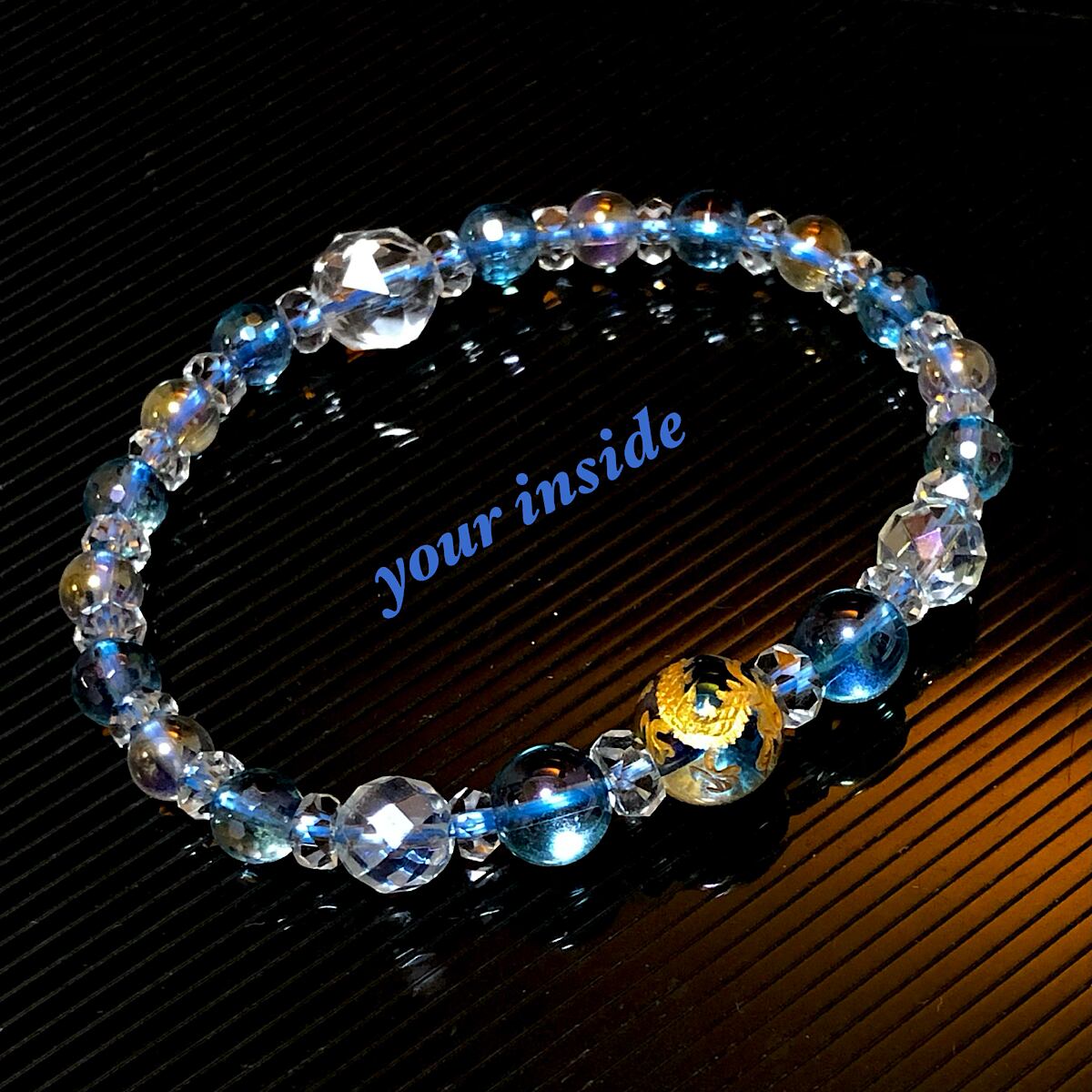 金色 龍彫り アクアオーラ 天然石ブレスレット