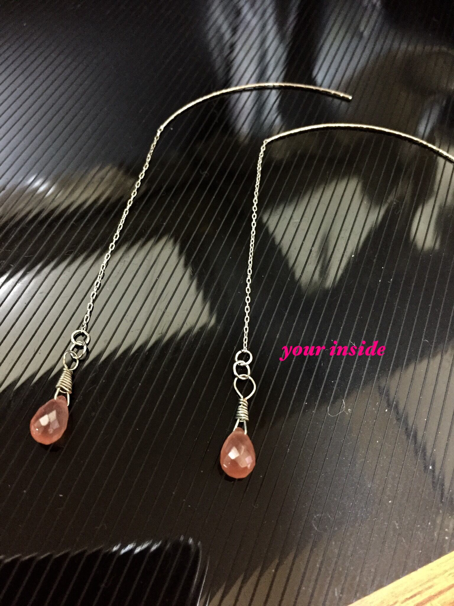 インカローズ アメリカン ピアス パワーストーン インカローズ しずく型 ドロップカット 4.5×7.5㎜ アルゼンチン産 チェーン式 透明感 ハンドメイド 天然石ピアス