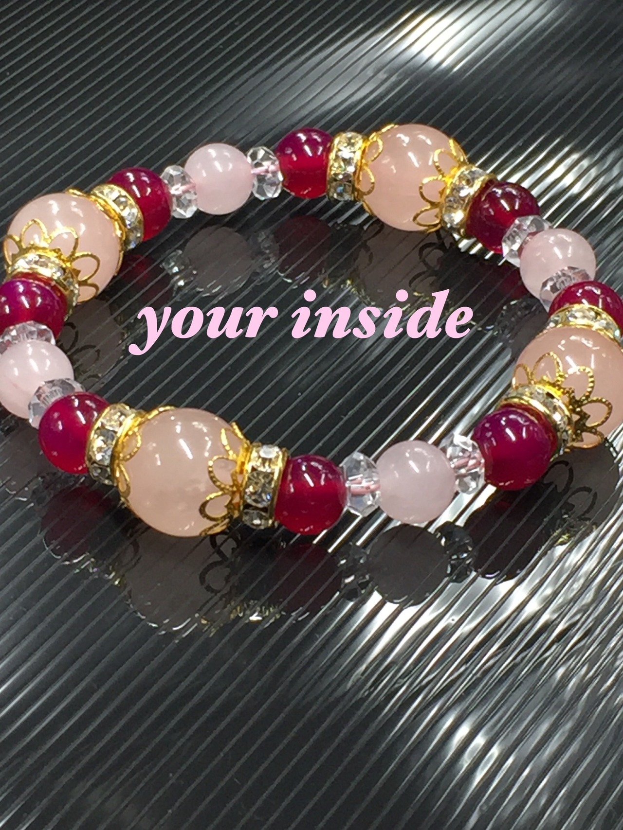 ローズクォーツ ルビーカラーアゲイト 天然石ブレスレット
