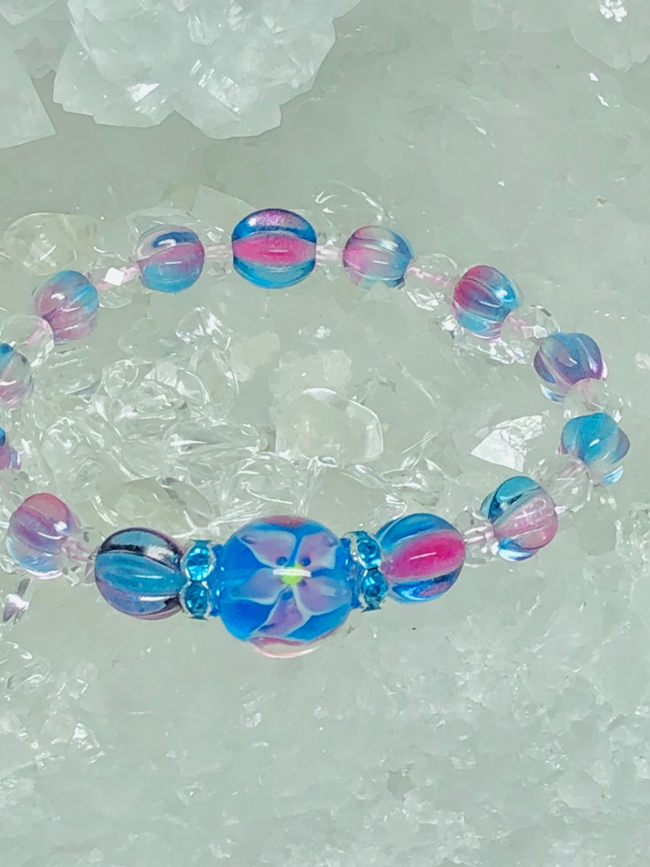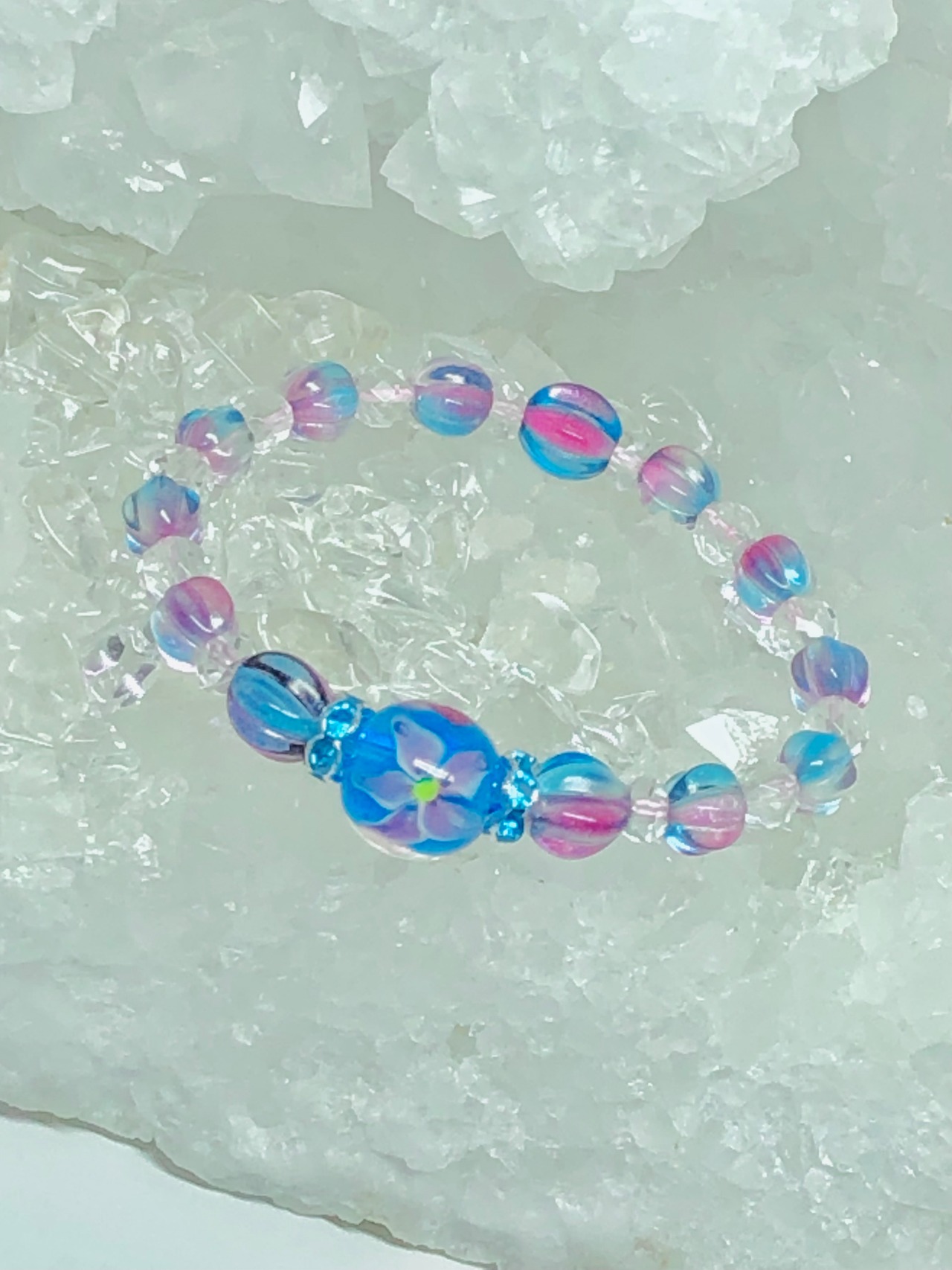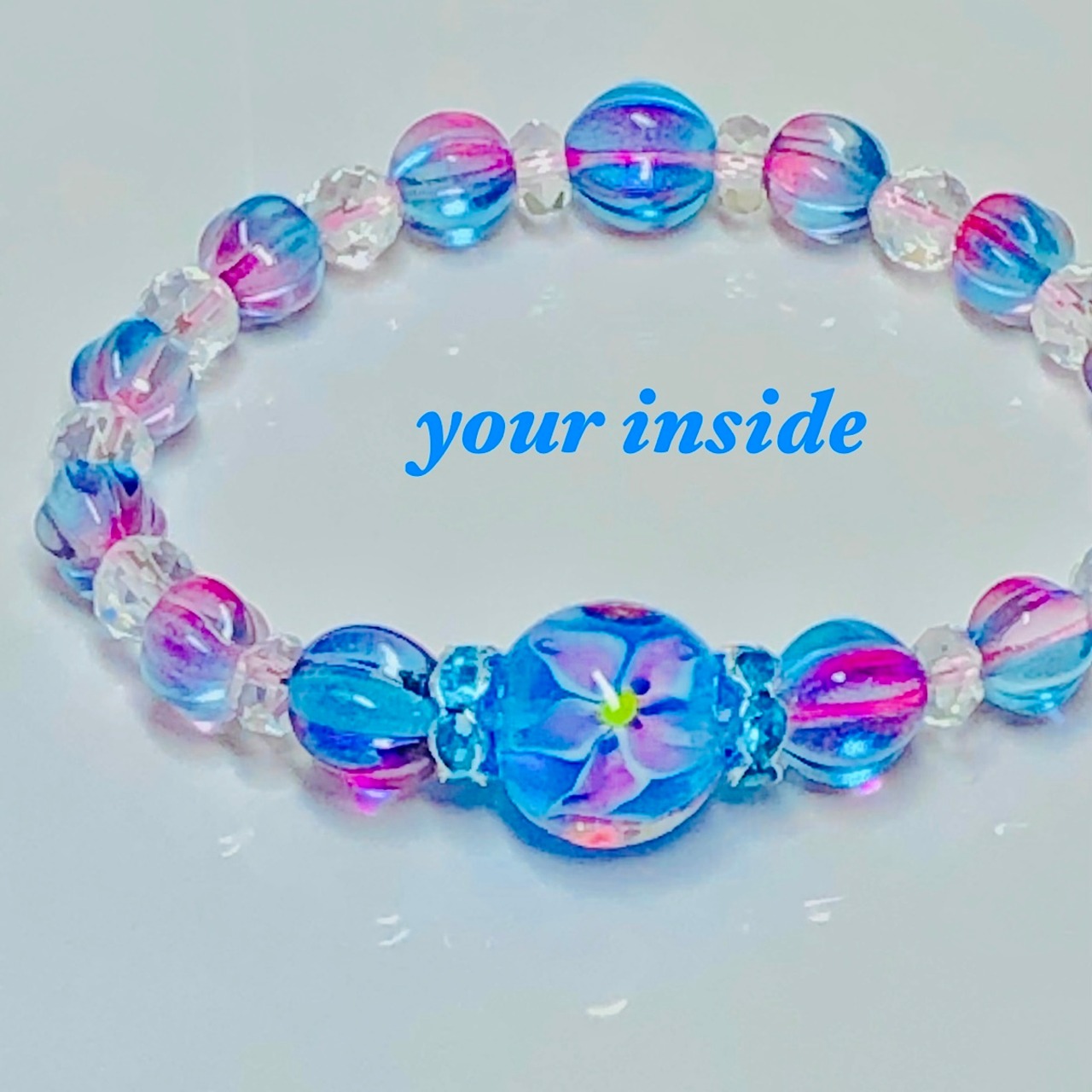 トンボ玉 水中花 クリスタル 天然石ブレスレット