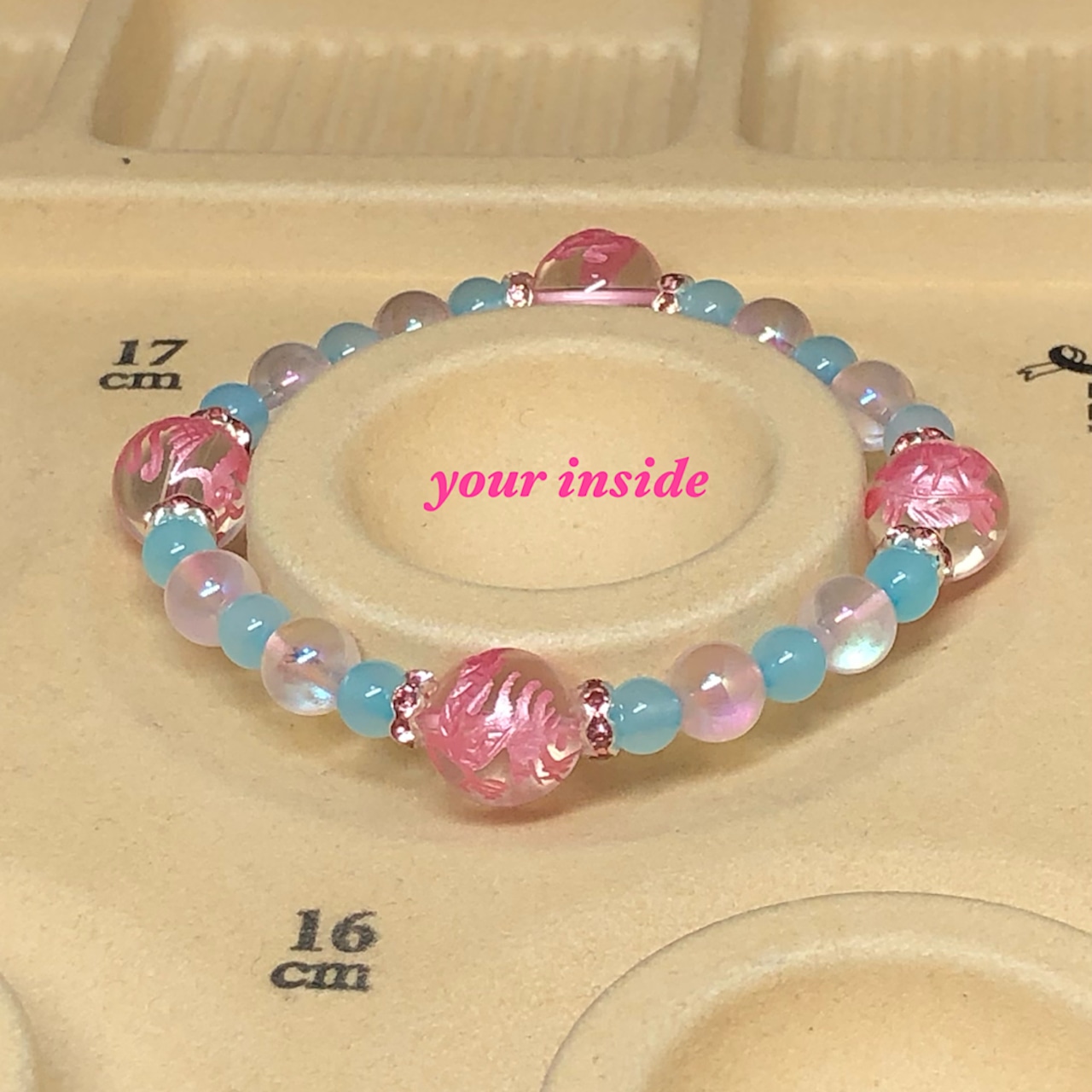 ブレスレットはオペロンゴムで伸縮いたします。