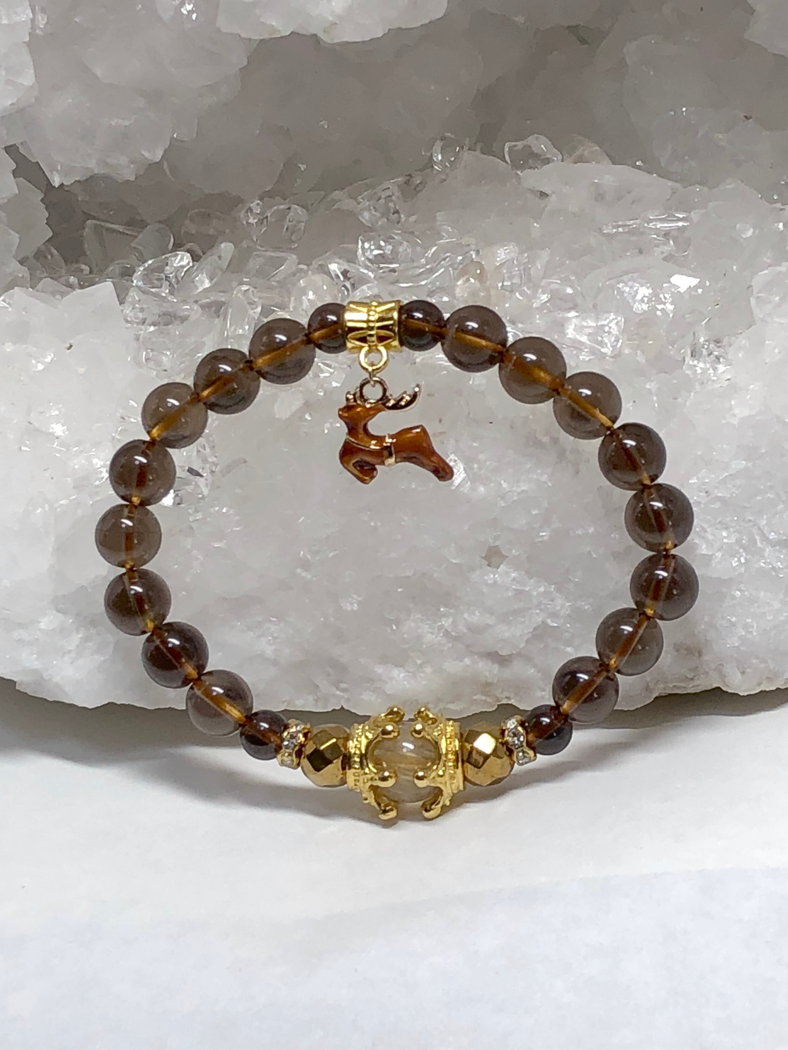 トナカイ ルチルクォーツ スモーキークォーツ 天然石 クリスマスブレスレット