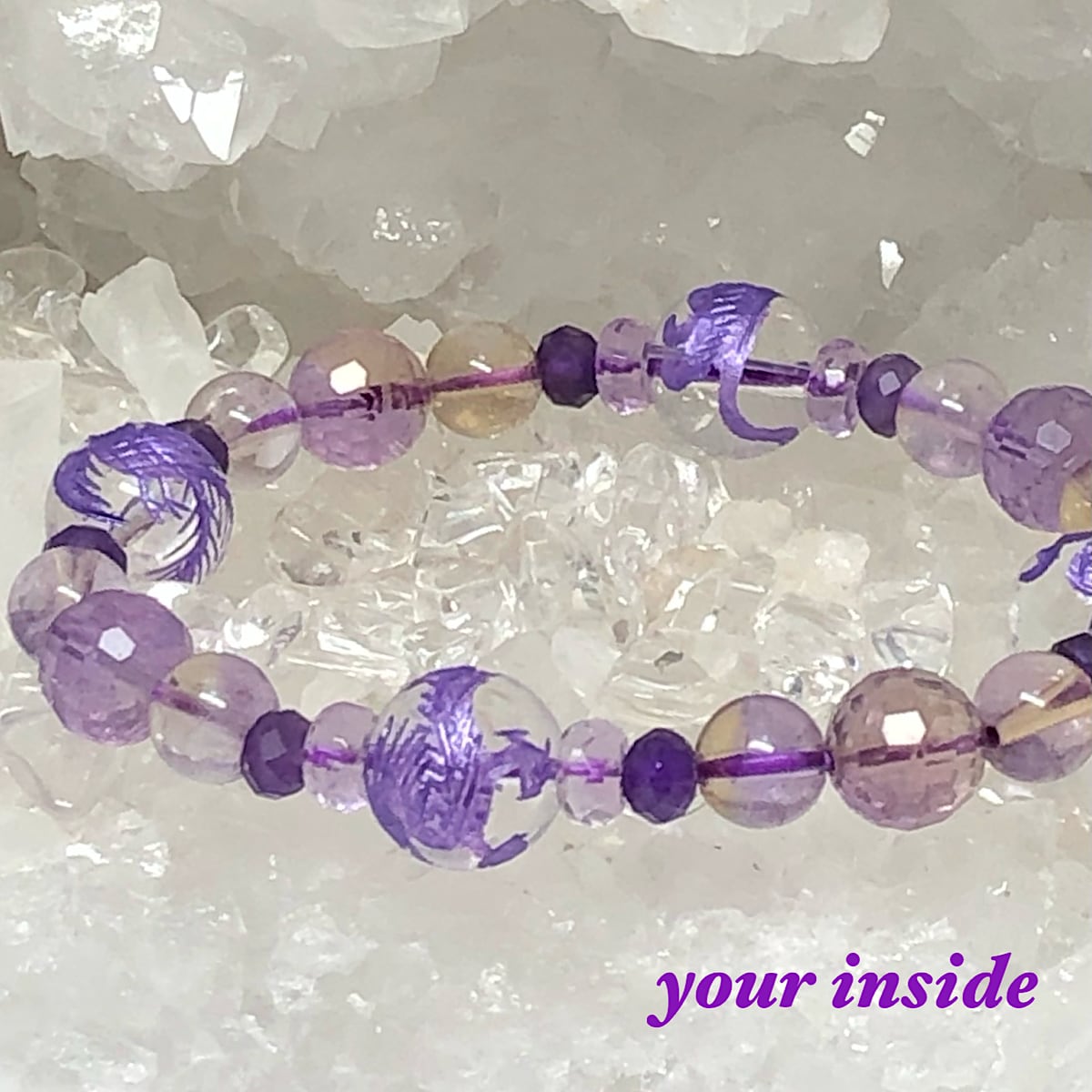 四神獣 紫彫り水晶 アメトリン 天然石ブレスレット
