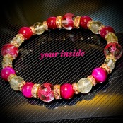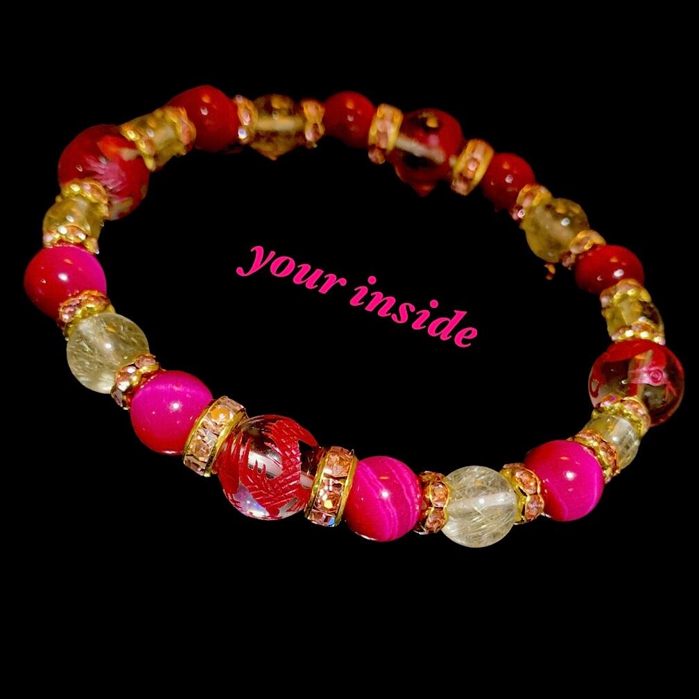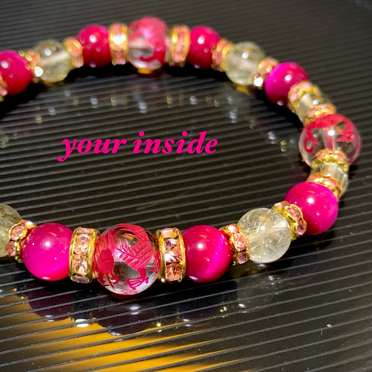 四神獣水晶 ワインレッド 彫り ルチルクォーツ ピンクタイガーアイ 天然石ブレスレット